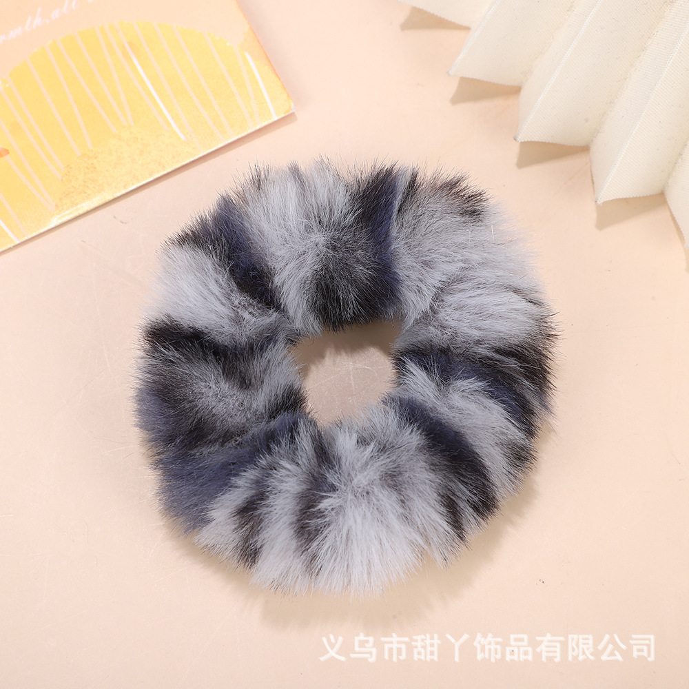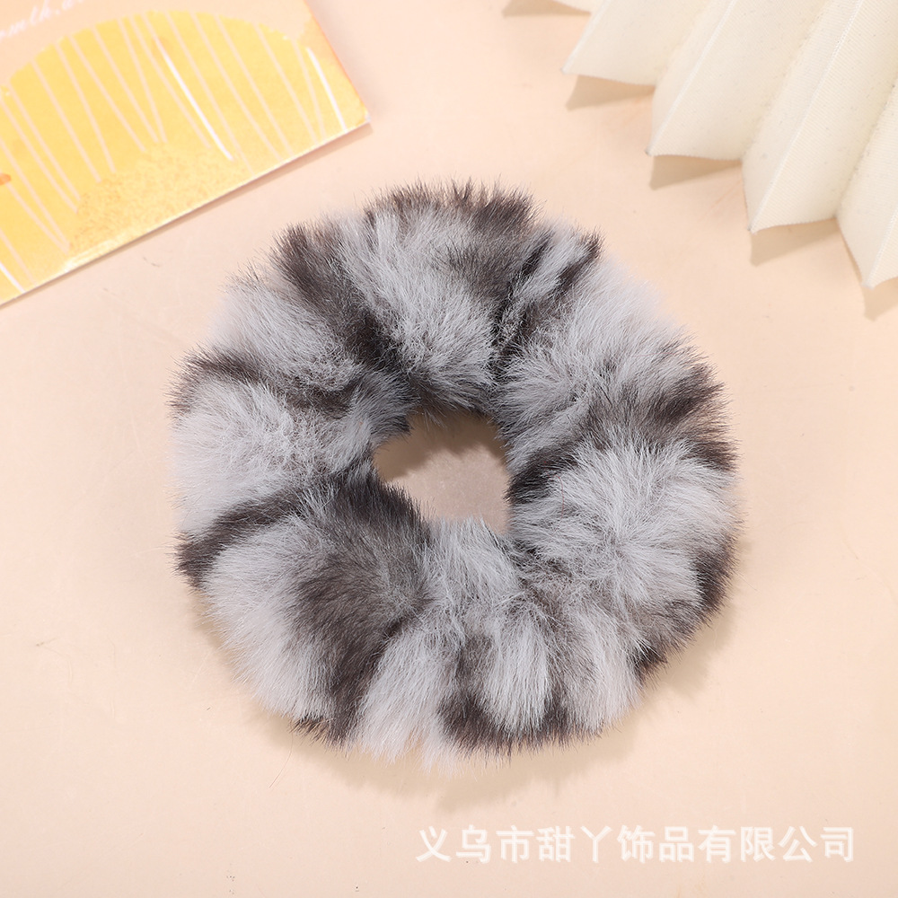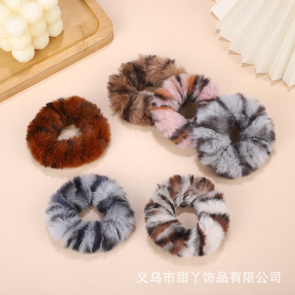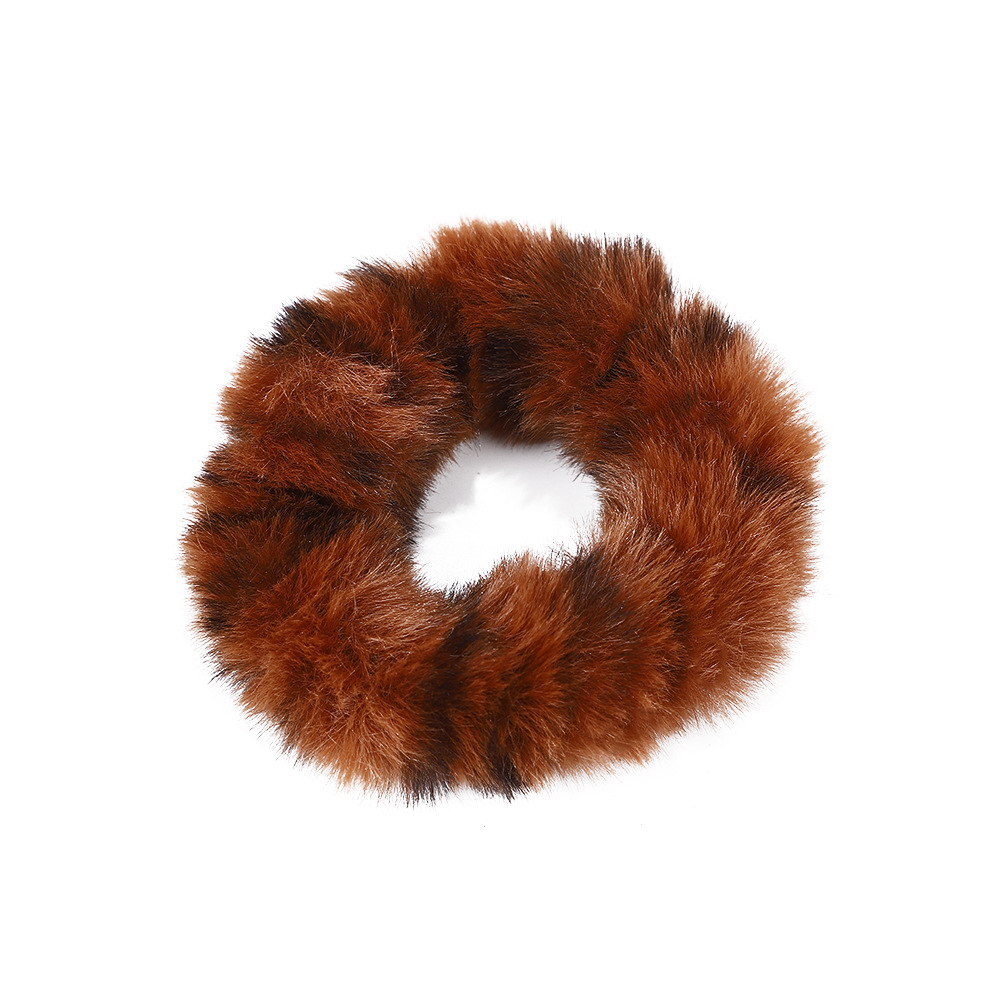 锌琦发饰新款秋冬豹纹彩色毛绒高弹力大肠发圈女欧美时尚扎发头绳