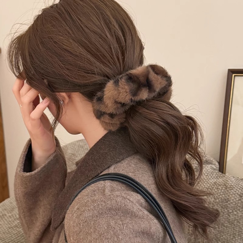秋冬の新型ヒョウ柄の毛の生えた髪の輪は超柔らかくて、髪の大きい腸の輪を傷つけません。