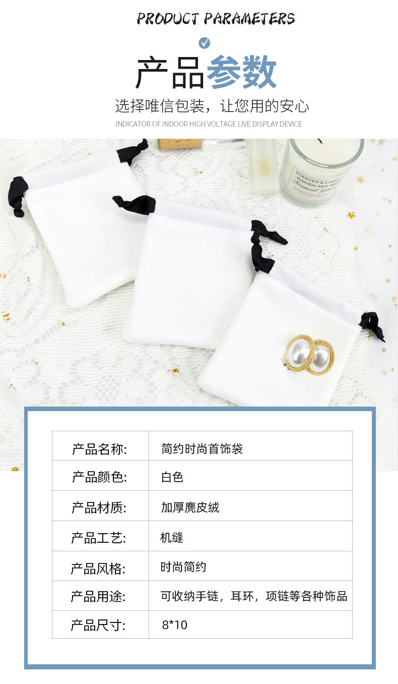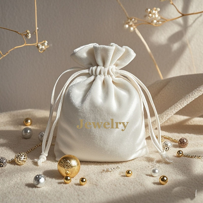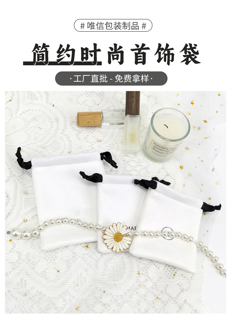 ミルクホワイト両面弾力ベルベット袋ソフトで快適な布袋化粧品サンプル収納ポケット