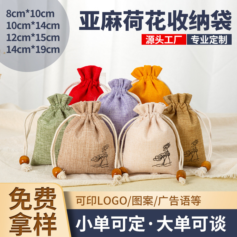 綿麻布巾紐巾着袋 カスタムプリントロゴ ジュエリー収納袋 ギフト巾着袋 ジュエリーバッグ
