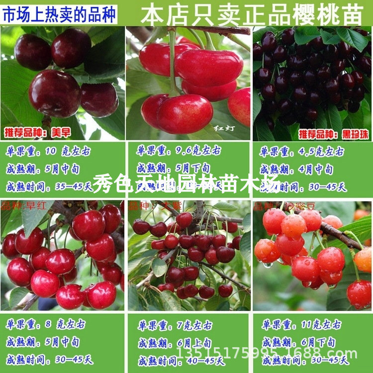 果樹苗、黒真珠チェリー苗、本格的な接ぎ木された大きなチェリー苗、鉢植え、南北植え、同一年に結実