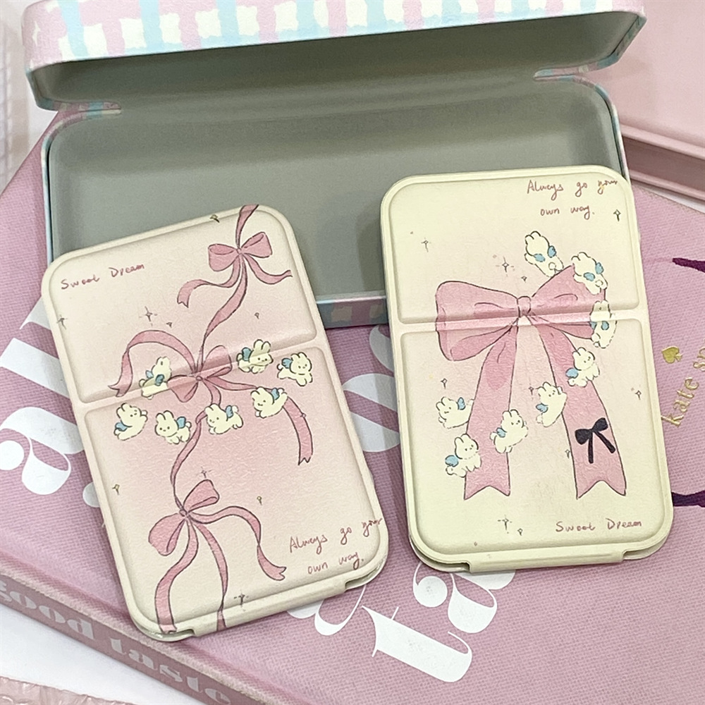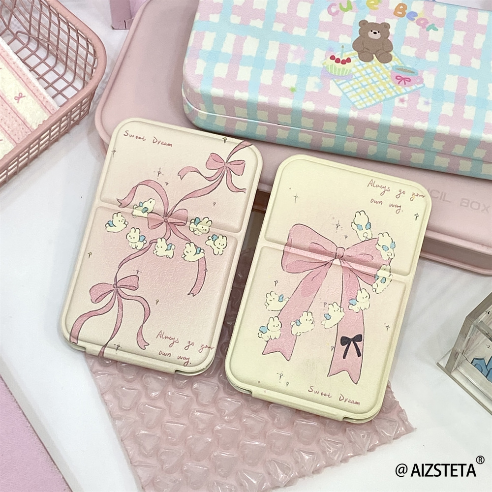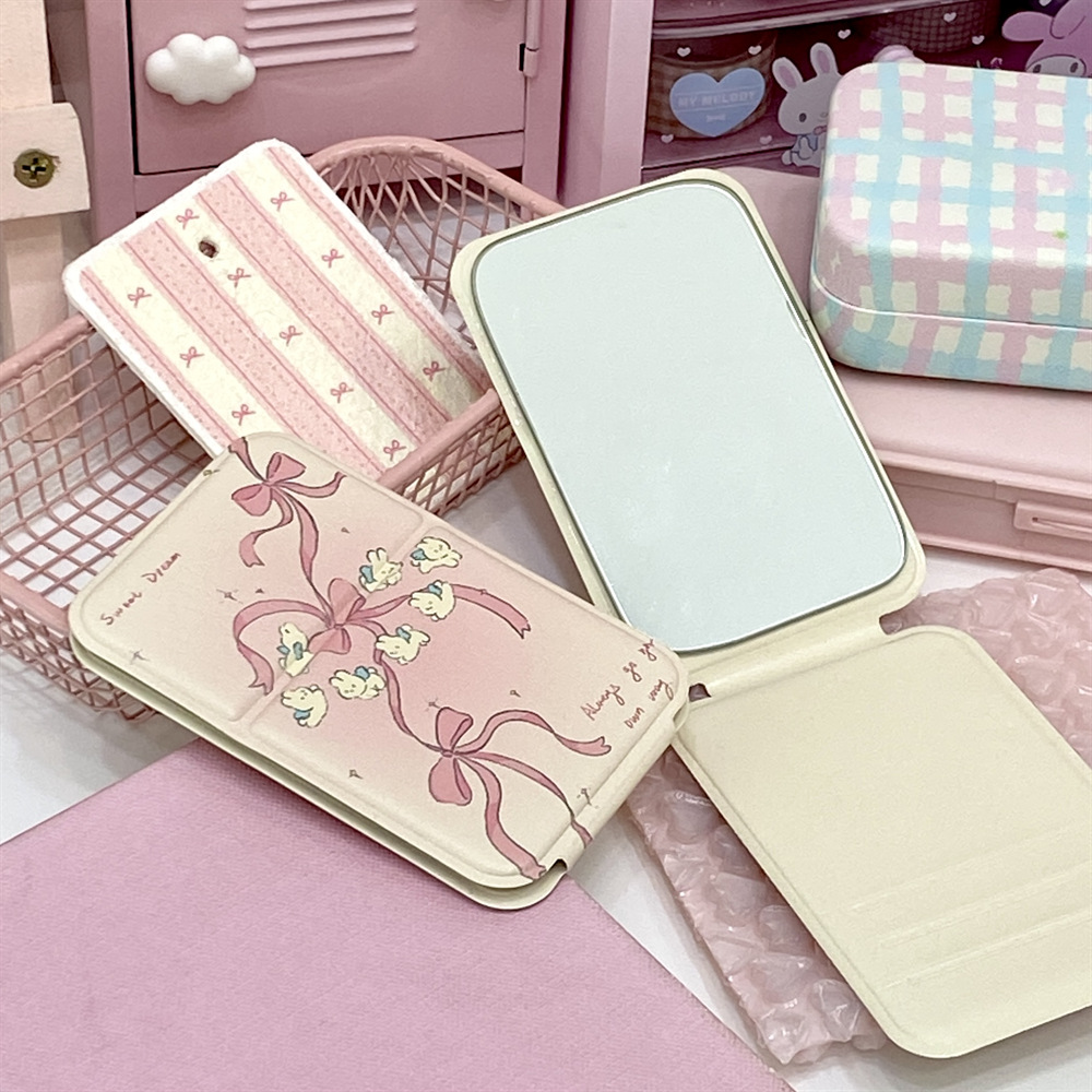 かわいい蝶結びのウサギの折り畳み鏡の小さいサイズの携帯pu革は化粧鏡のミニを持っています。