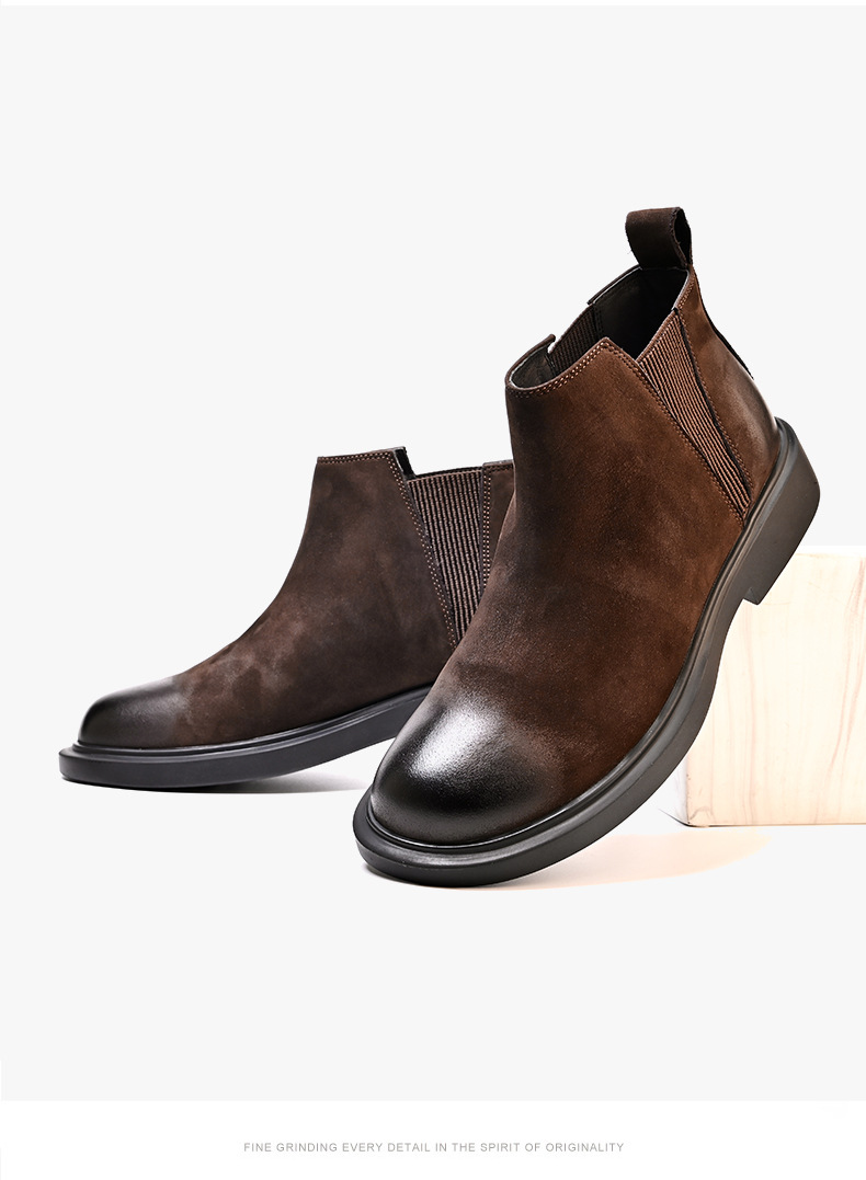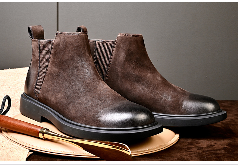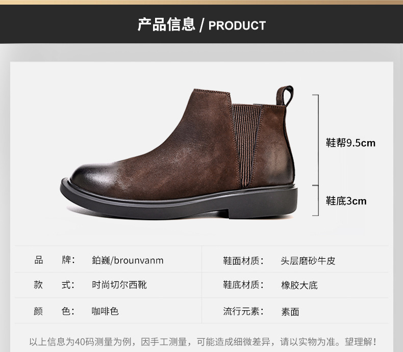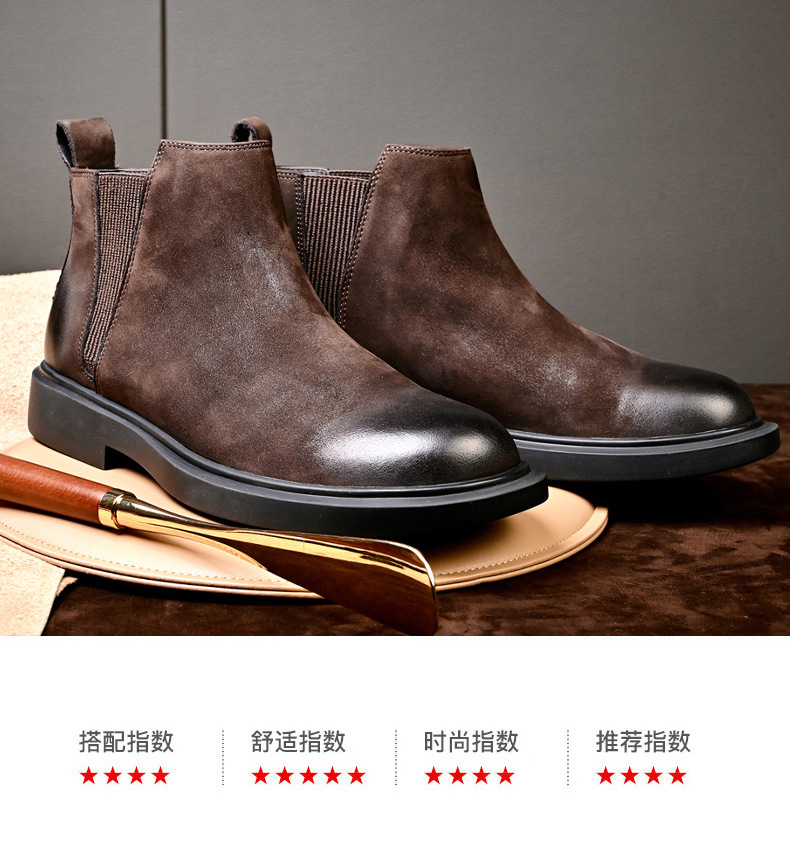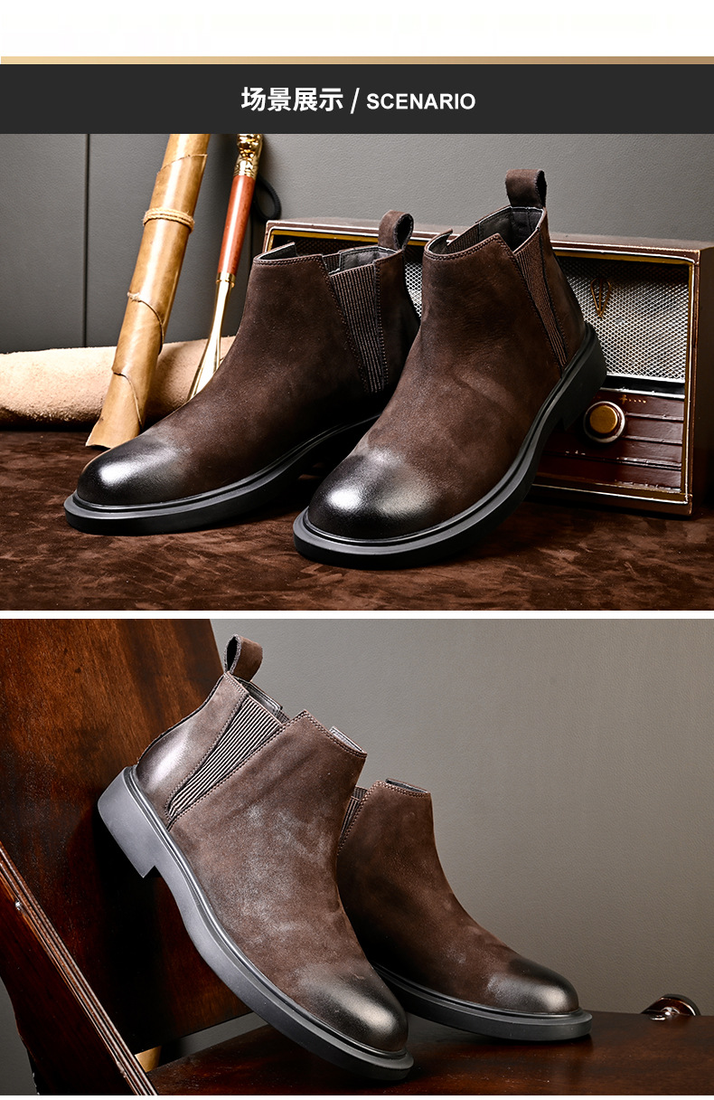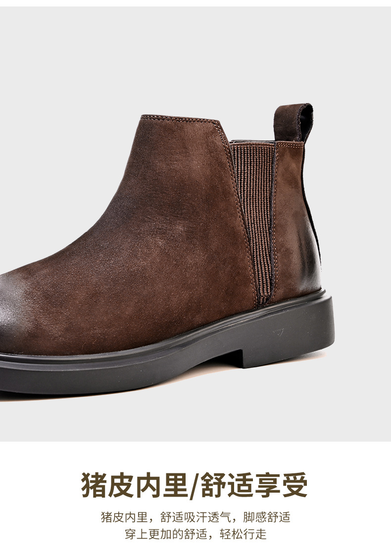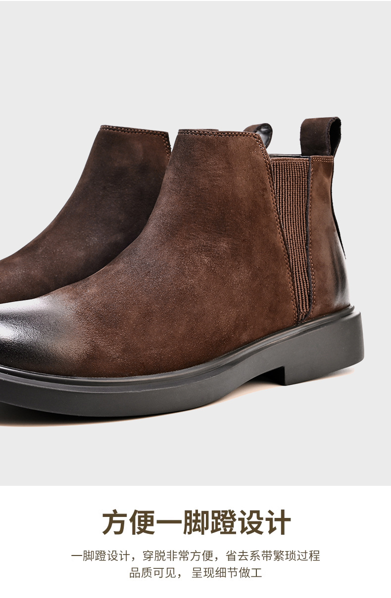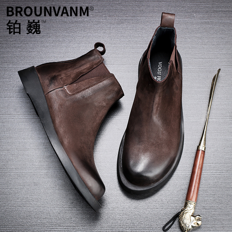 铂巍商务休闲切尔西靴英伦百搭复古工装短靴一脚蹬真皮潮流男靴