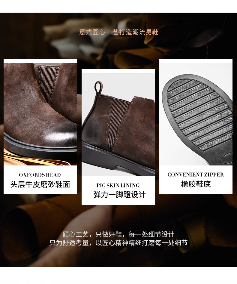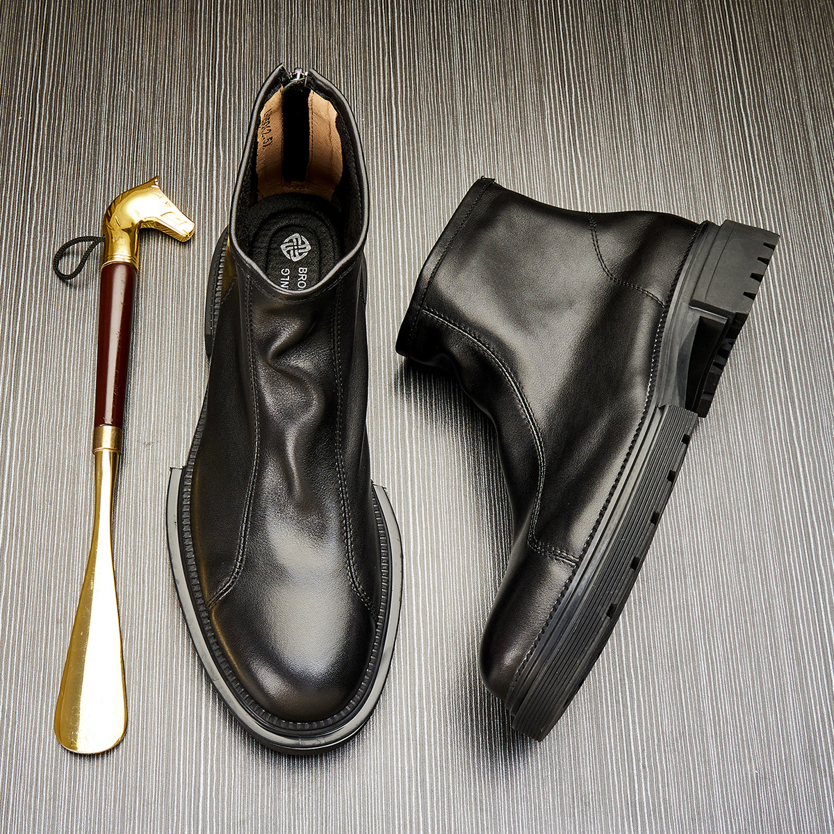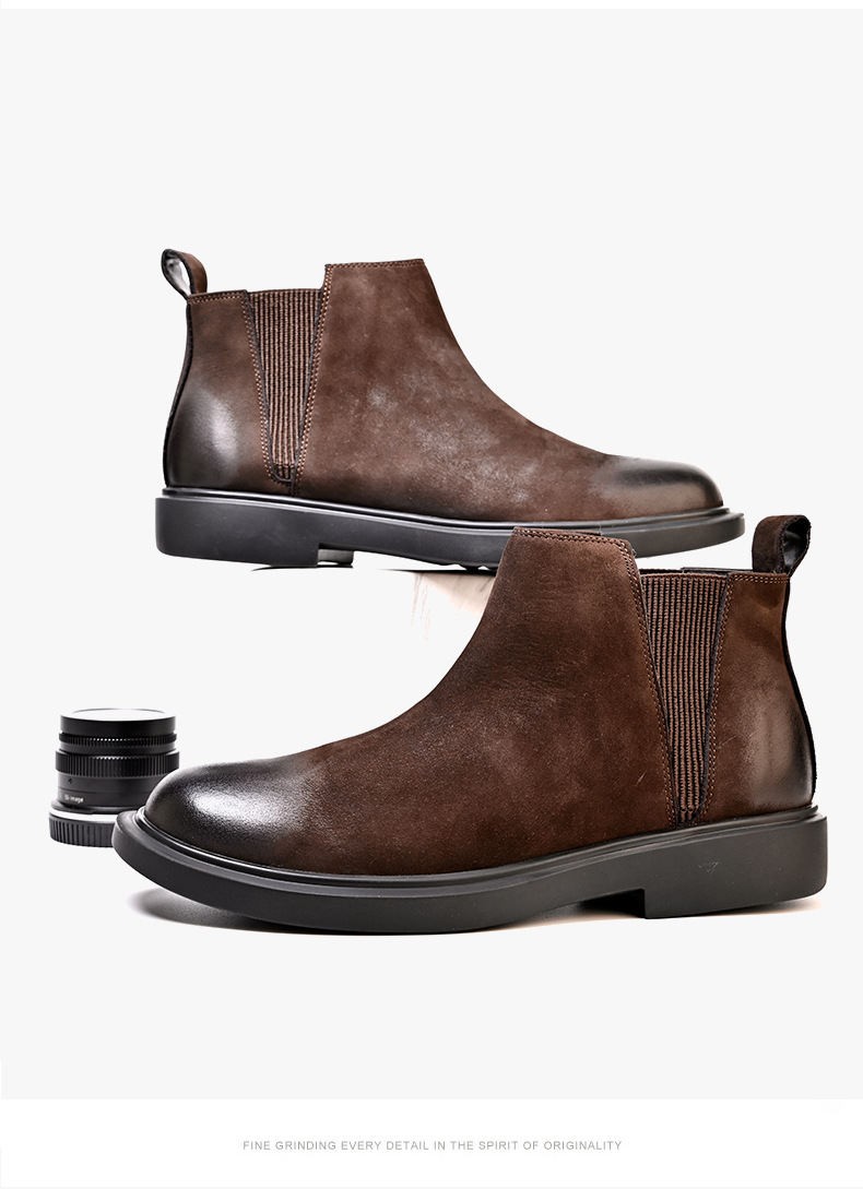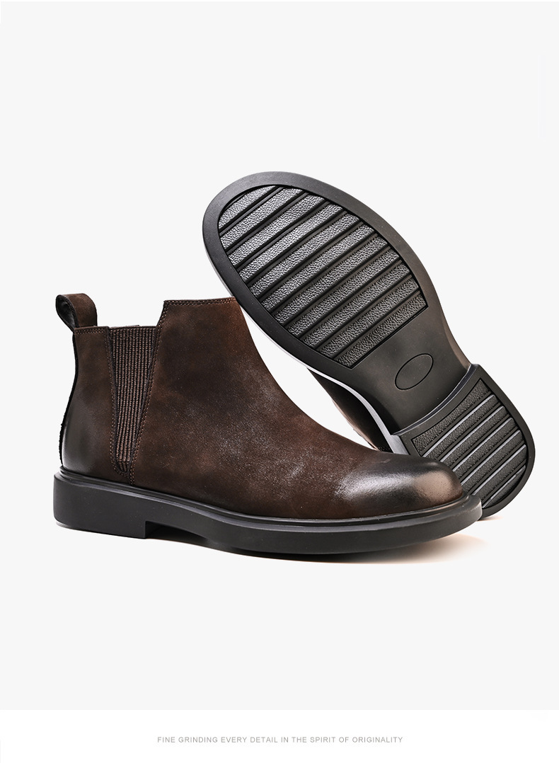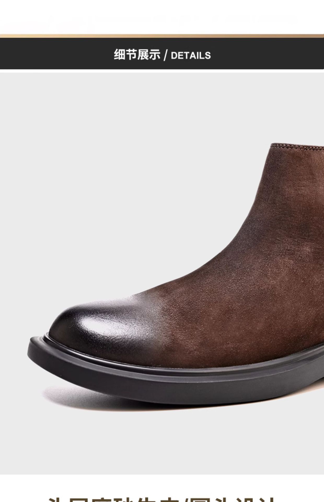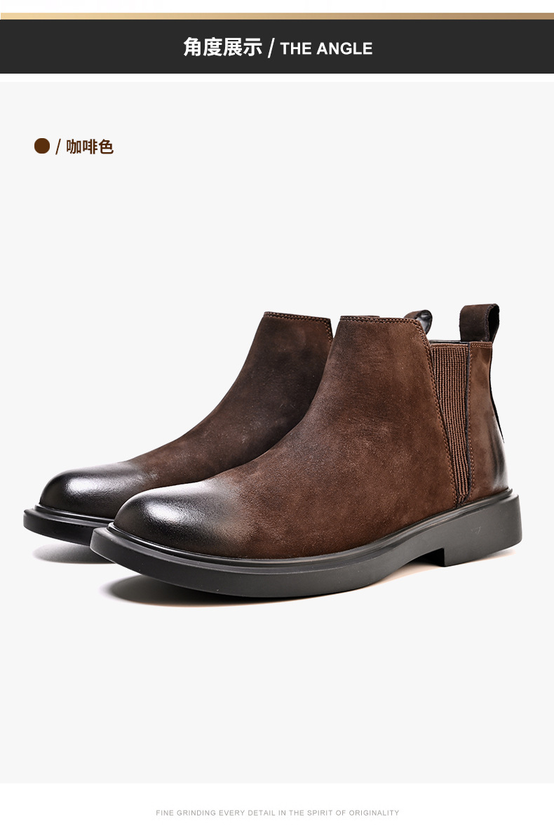 铂巍商务休闲切尔西靴英伦百搭复古工装短靴一脚蹬真皮潮流男靴