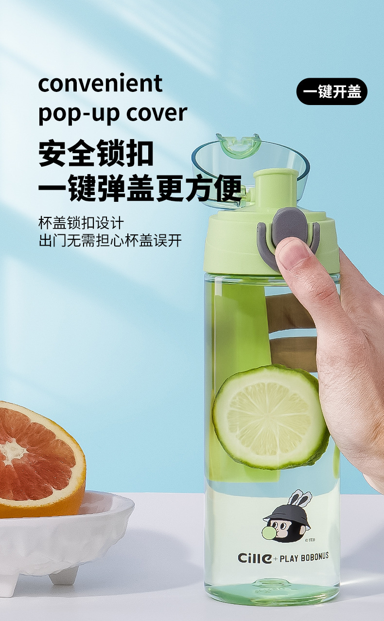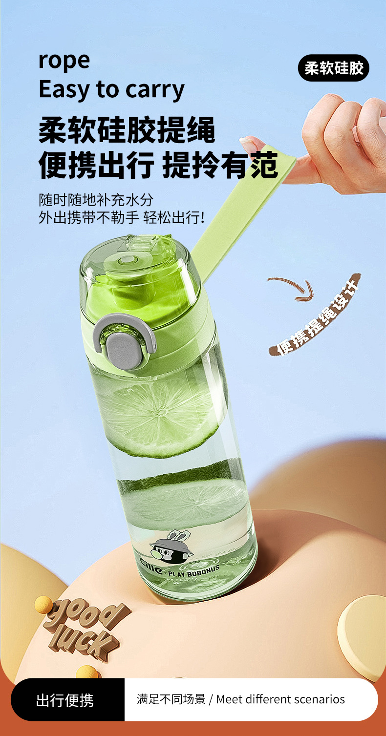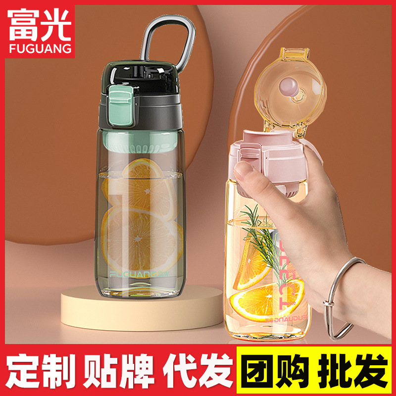 Fuguang 夏用プラスチック製ウォーターカップ、学生専用スポーツケトル、高見え、ポータブル、高温耐性、落下防止カップ、カスタマイズ