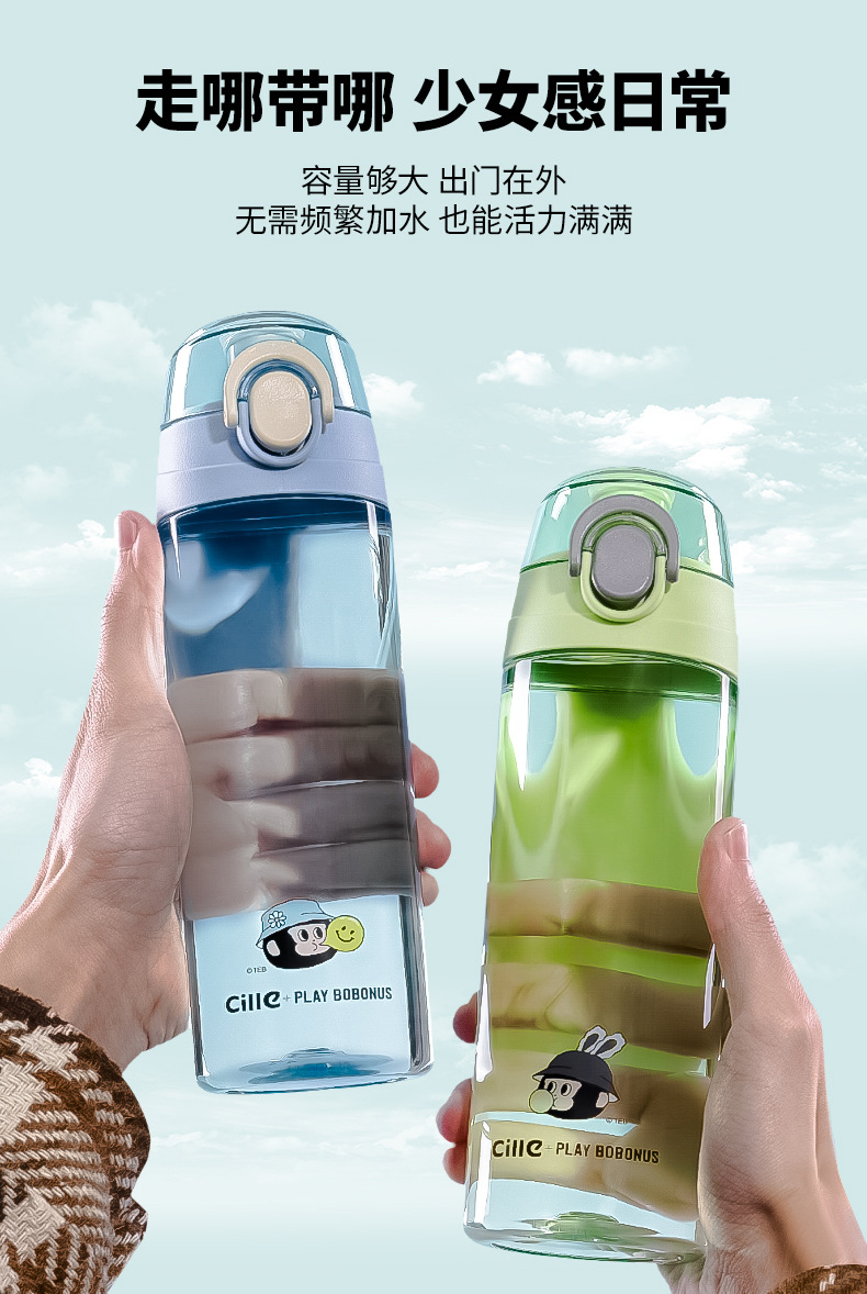 Xile 大容量クリエイティブポータブル学生ウォーターカップ屋外バウンスカッププラスチックスペースカップシンプルな大容量ケトル