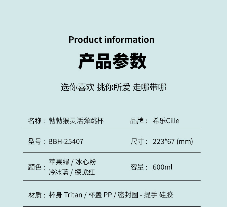 希楽勃布猿プラスチックカップ女子学生tritanスポーツカップは高温に耐えてお湯を入れることができます。