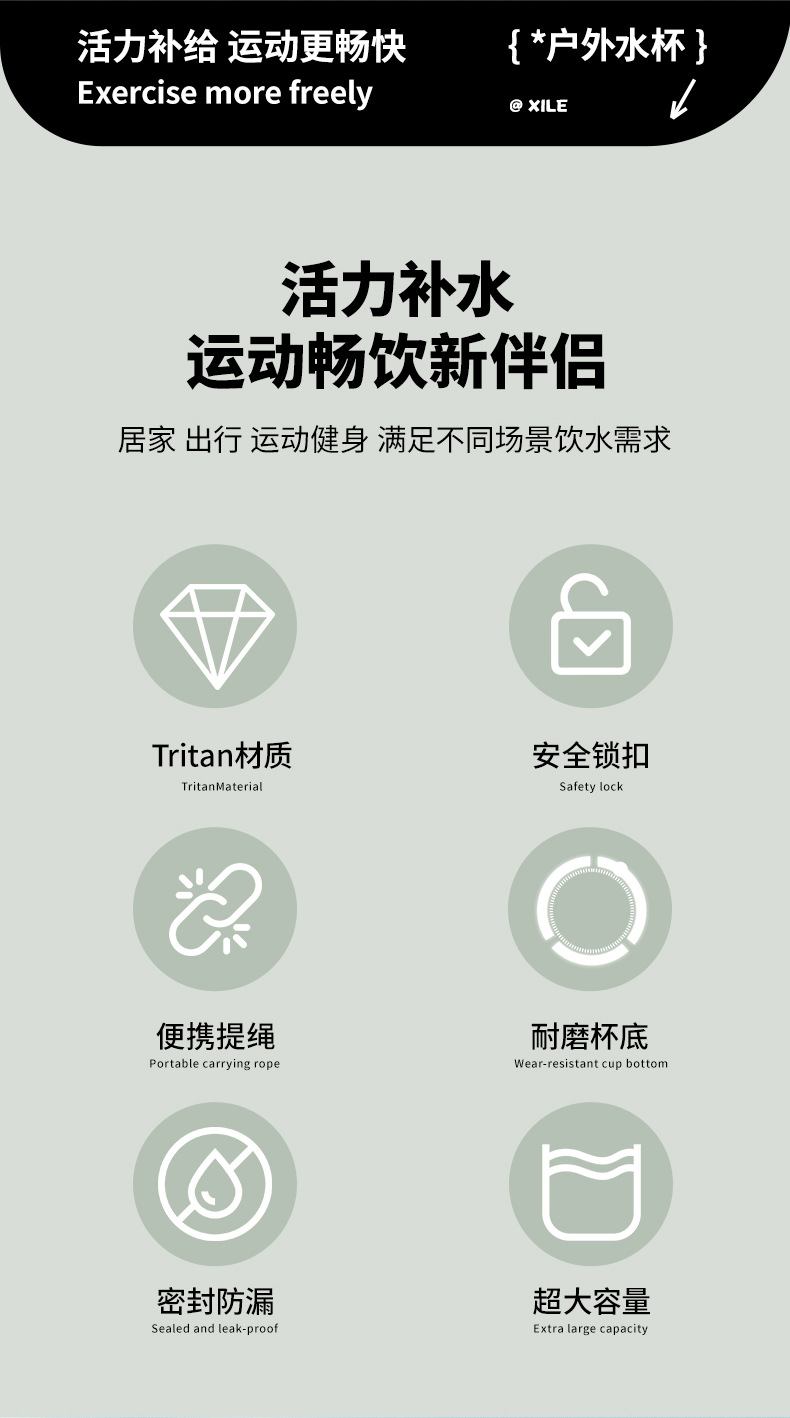 Xile ウォーターカップ学生大容量トリタン素材ケトル高価値スポーツ高温耐性夏ポータブルカップ