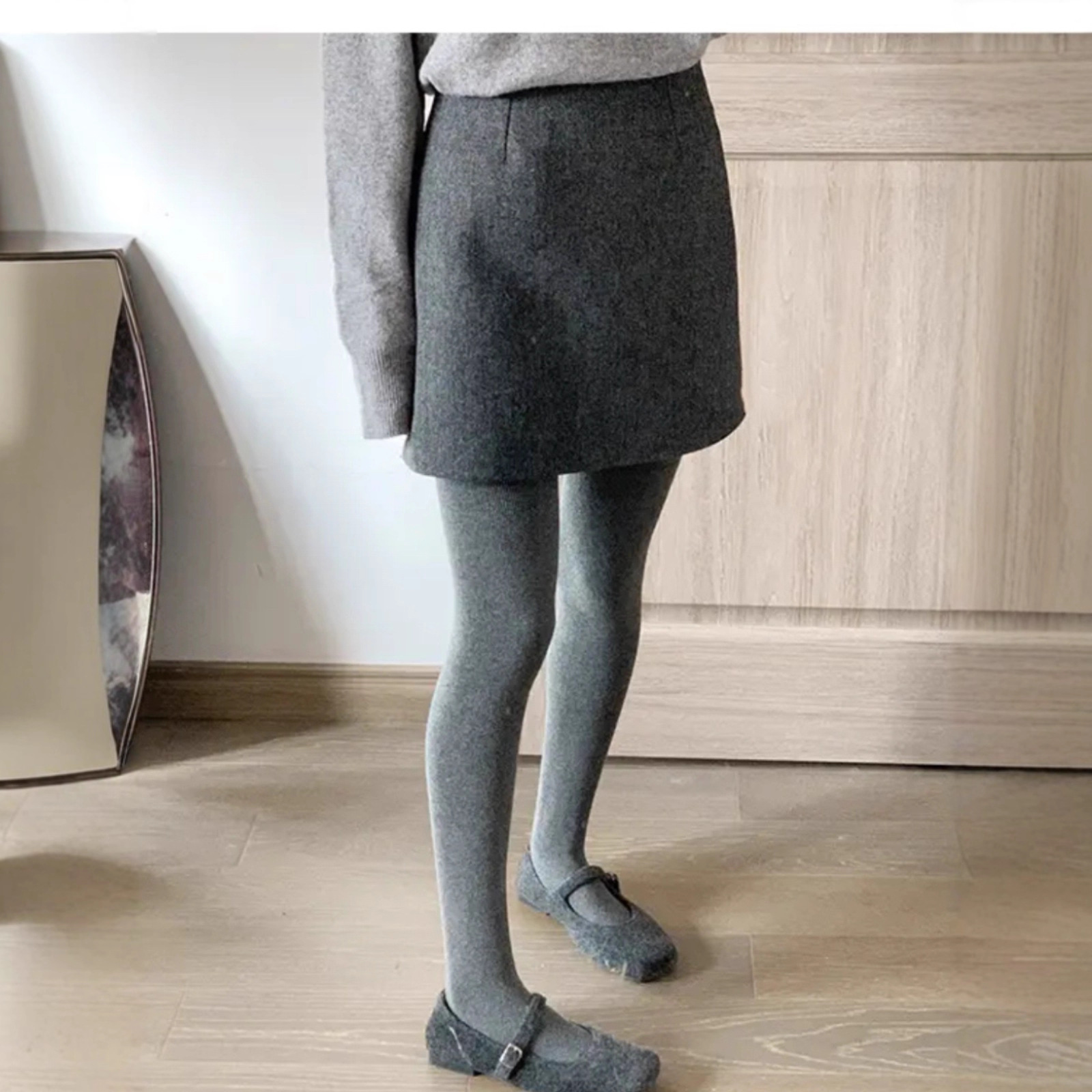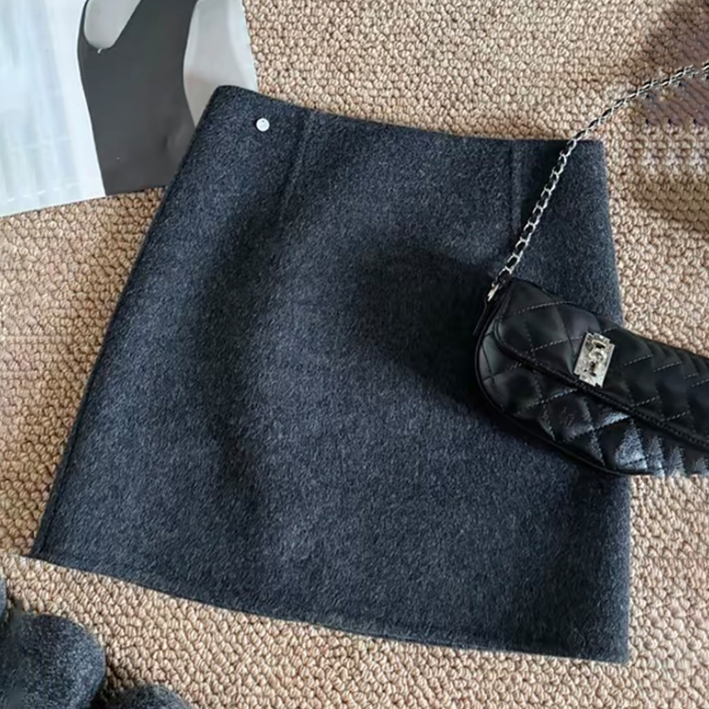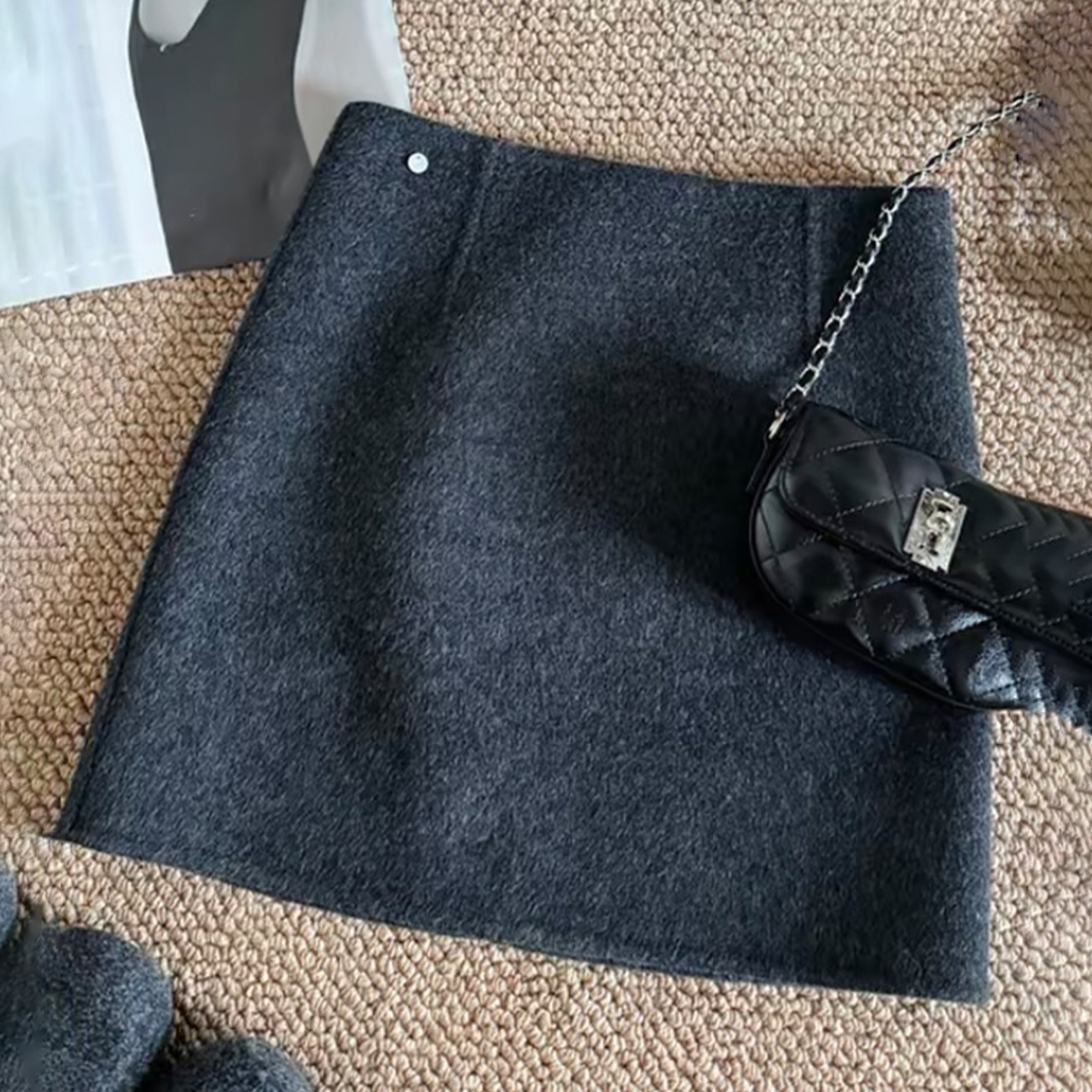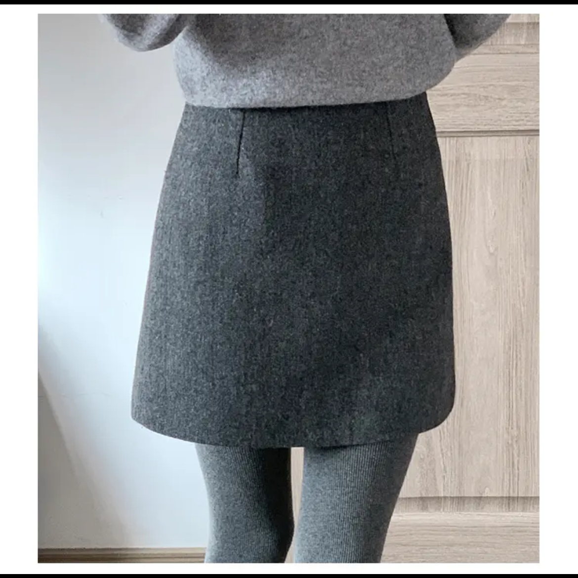 女性用グレーウールスカート2025秋冬アウターレイヤリング小柄なAラインヒップカバーショートスカートスリムフィット