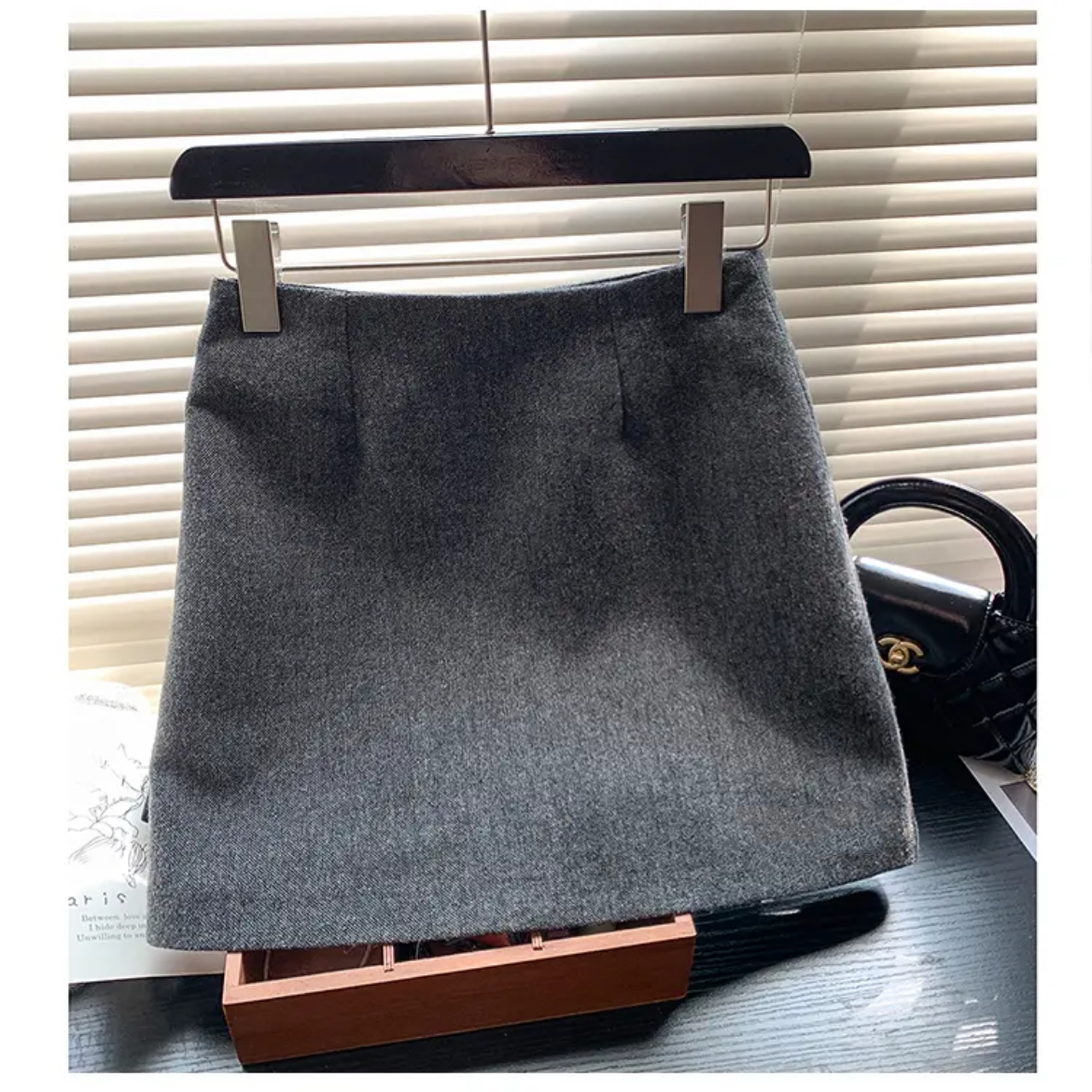 现货陆续发推荐!复古百搭一片式灰色毛呢短裙女早秋高腰A字半身