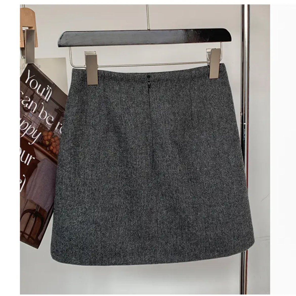 越穿越爱灰色毛呢半身裙女2025秋冬新款防走光a字显瘦包臀短裙子