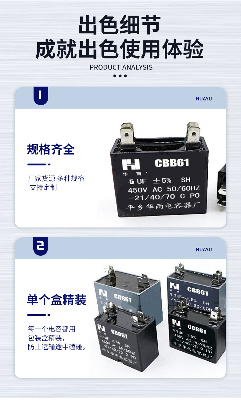 CBB61ファンコンデンサ1.2/1.5/1.8/2/2.5/3/4/5UF450V天井ファン油煙機コンデンサ