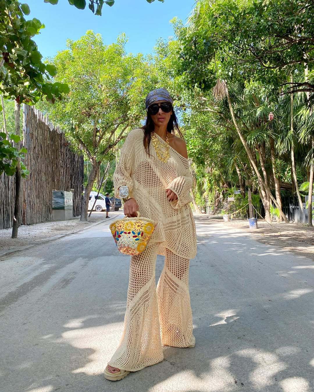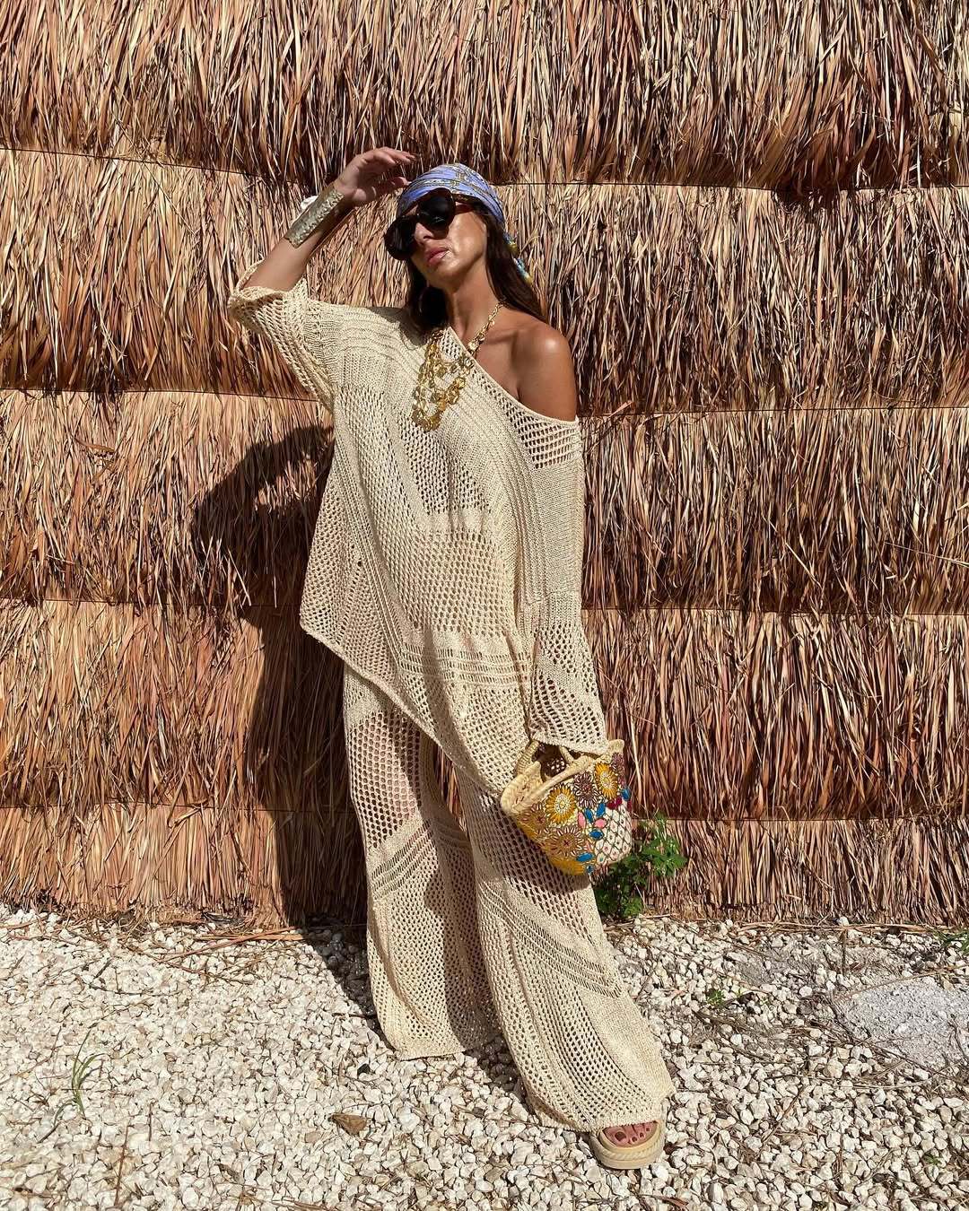 クロスボーダーの新型純色の斜め肩の透かし彫りの上着のラッパの透かし彫りのズボンのスーツのカジュアルで快適で怠惰なスタイルのスーツ