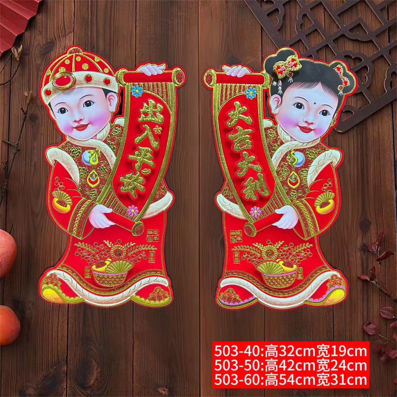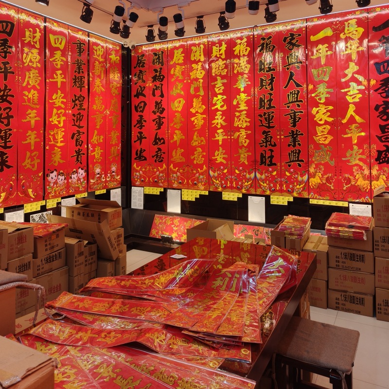 关于包装:对联,一副一包装,,立体福字等其他年饰均为独立包装,10个一捆,其他年画产品之类看详情描述,批发供应任何哪款都要按最小起批量起订 详情可