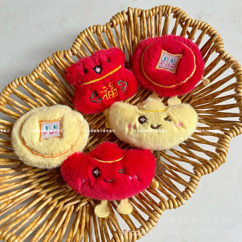 新年アニメ銅銭元宝福袋装飾ぬいぐるみかわいい造形国風要素DIY人形ブローチ