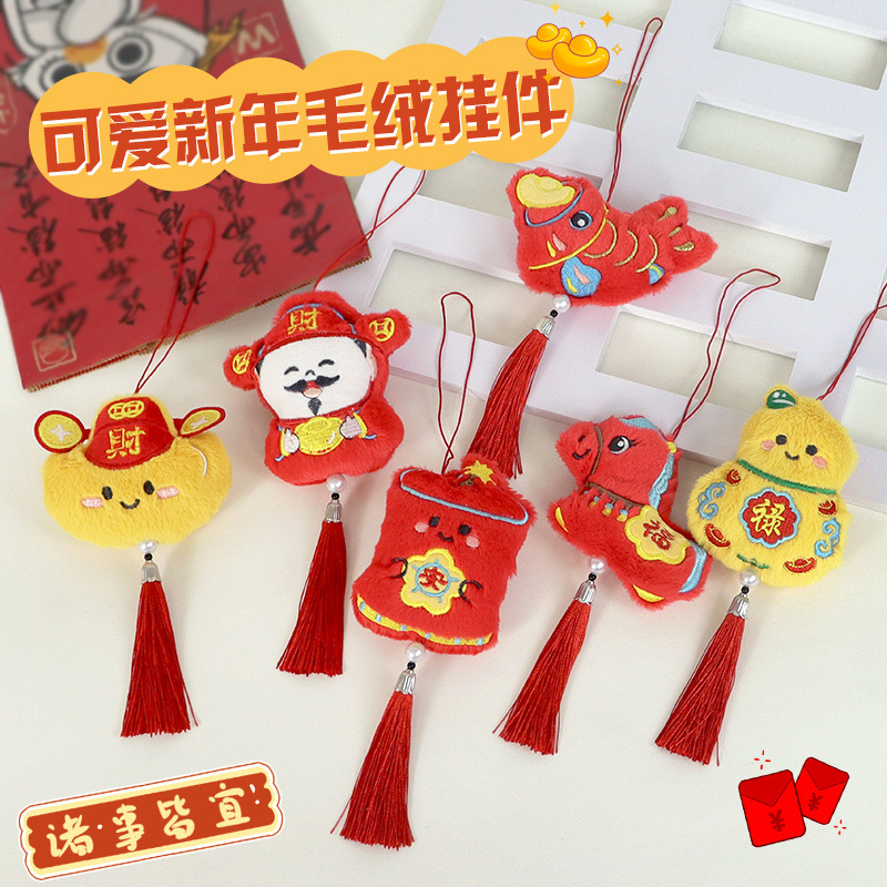 新年小礼品做活动毛绒钥匙扣喜庆挂饰小饰品挂件公仔包包挂件福袋