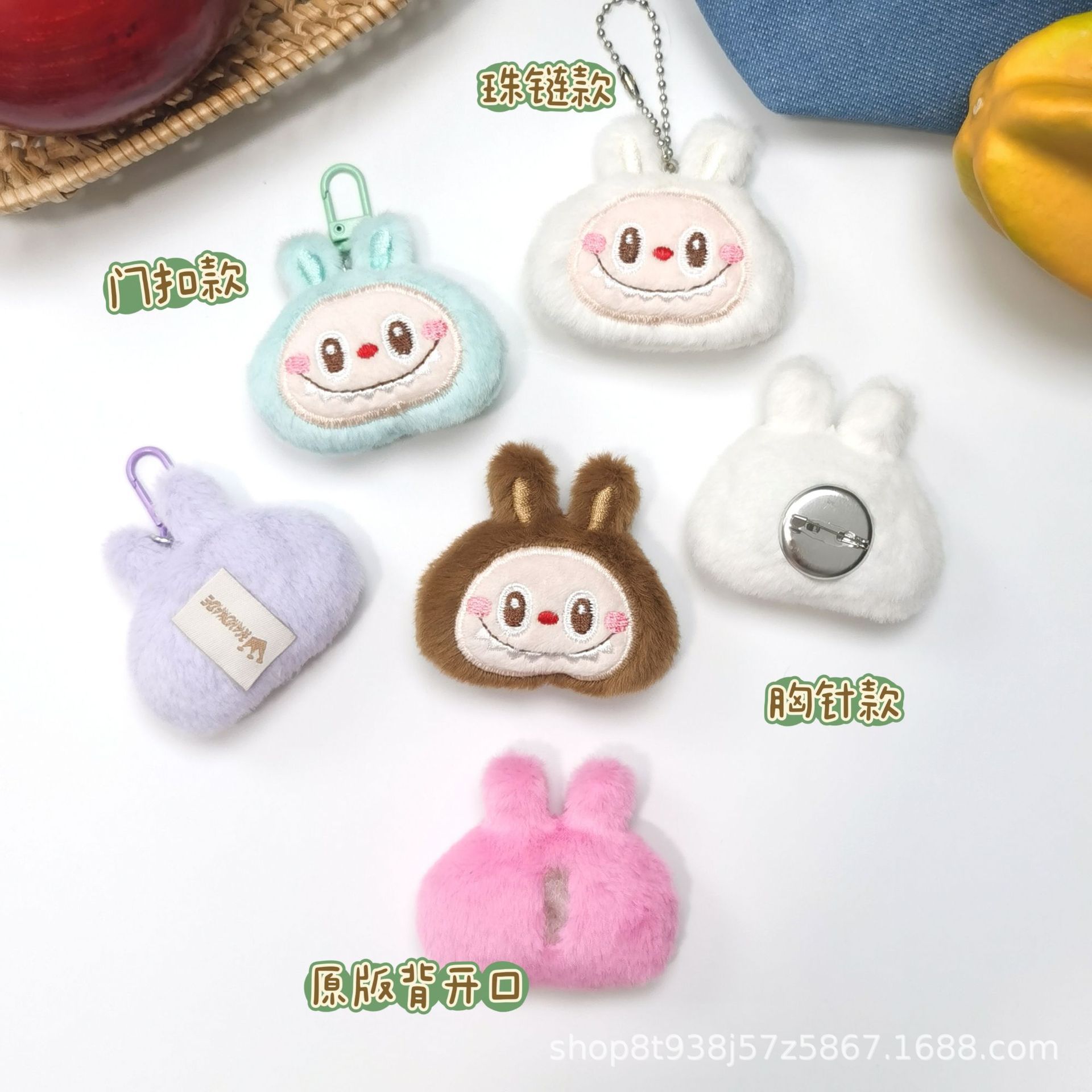 アニメのぬいぐるみのペンダントが可愛いウサギのブローチ人形の熊のカエルのカバンがdiyキーホルダーを飾っています。
