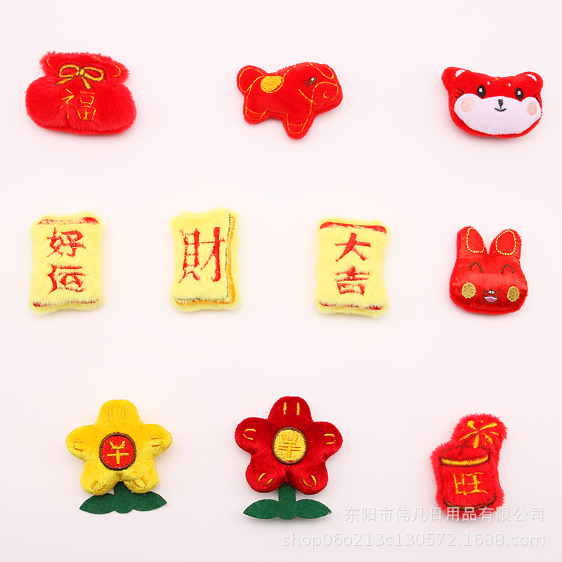 新年喜庆款生肖兔马中国风毛绒公仔配件卡通玩偶胸针配饰装饰辅料
