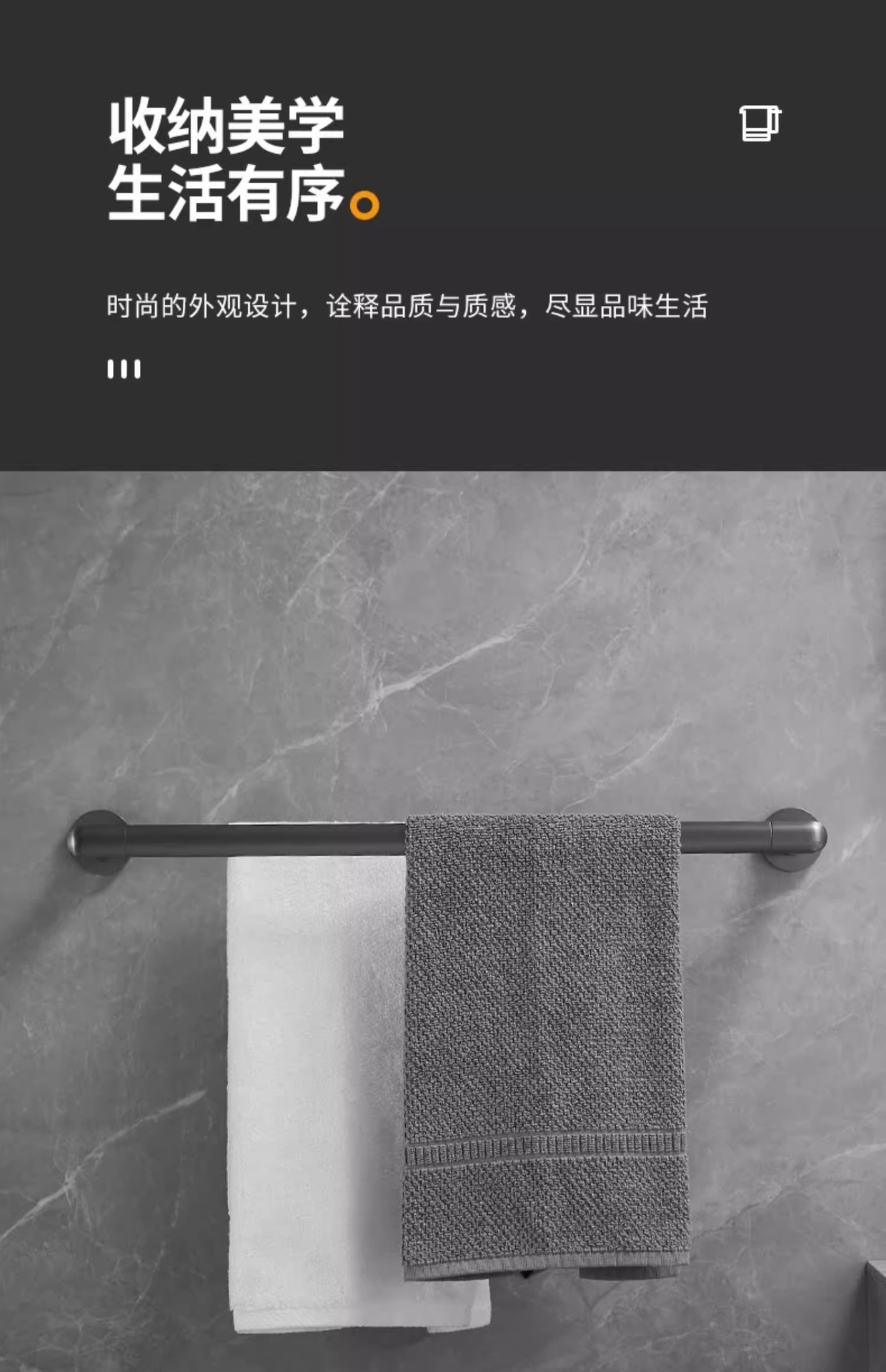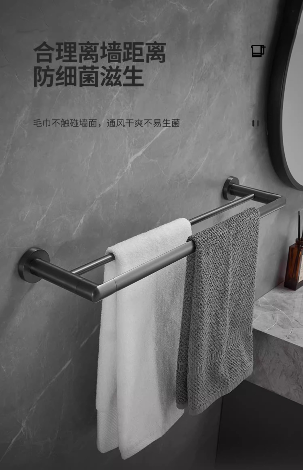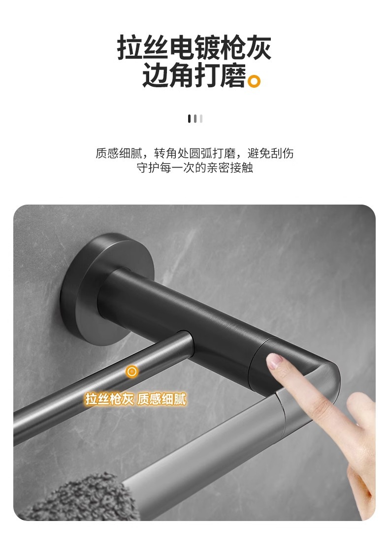 全铜枪灰毛巾架艺术风酒店卫生间壁挂毛巾杆浴室轻奢浴巾架活动杆