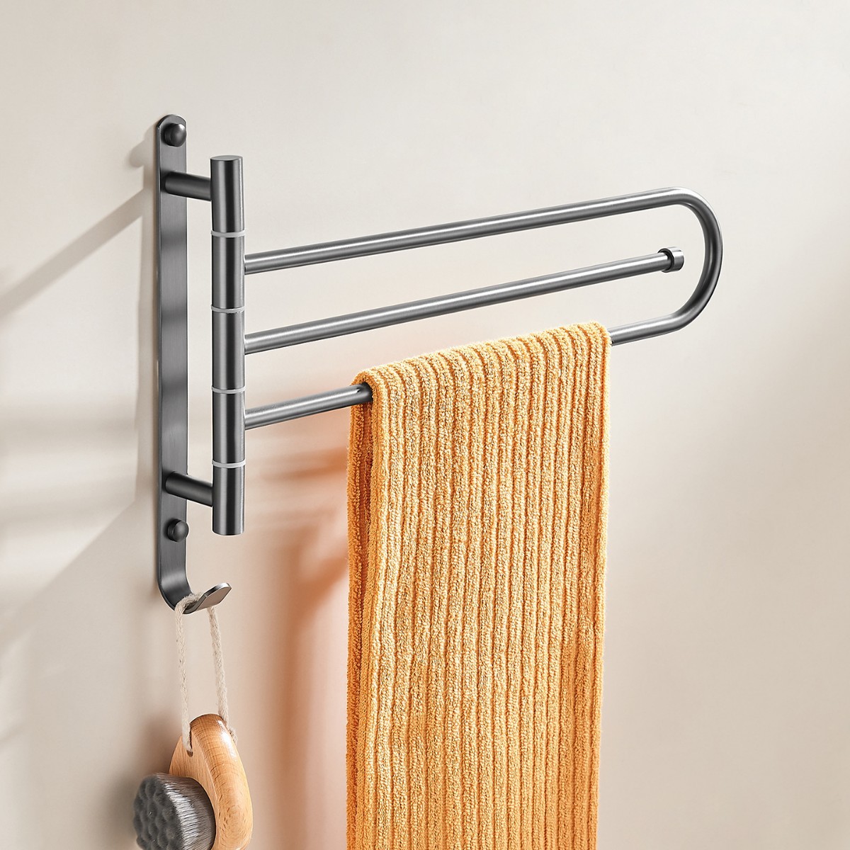 拉丝枪灰全铜旋转毛巾架卫生间高端活动毛巾杆浴室壁挂转角置物架
