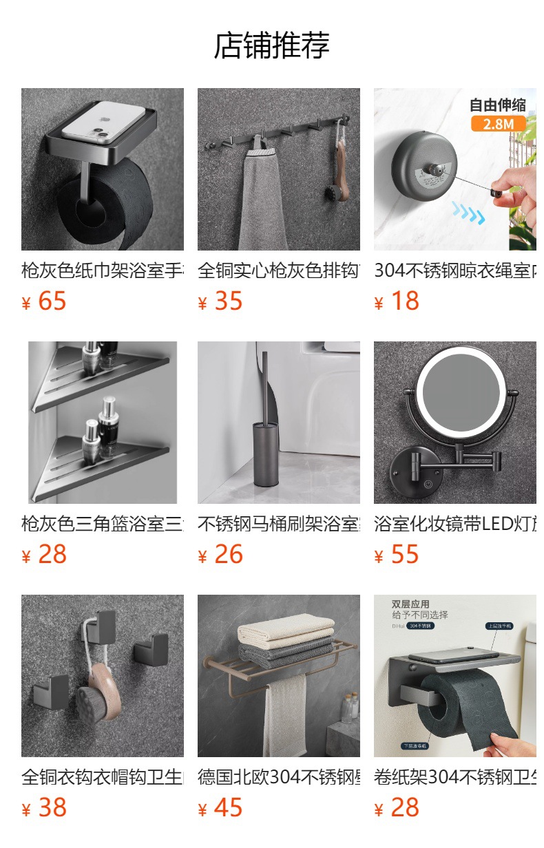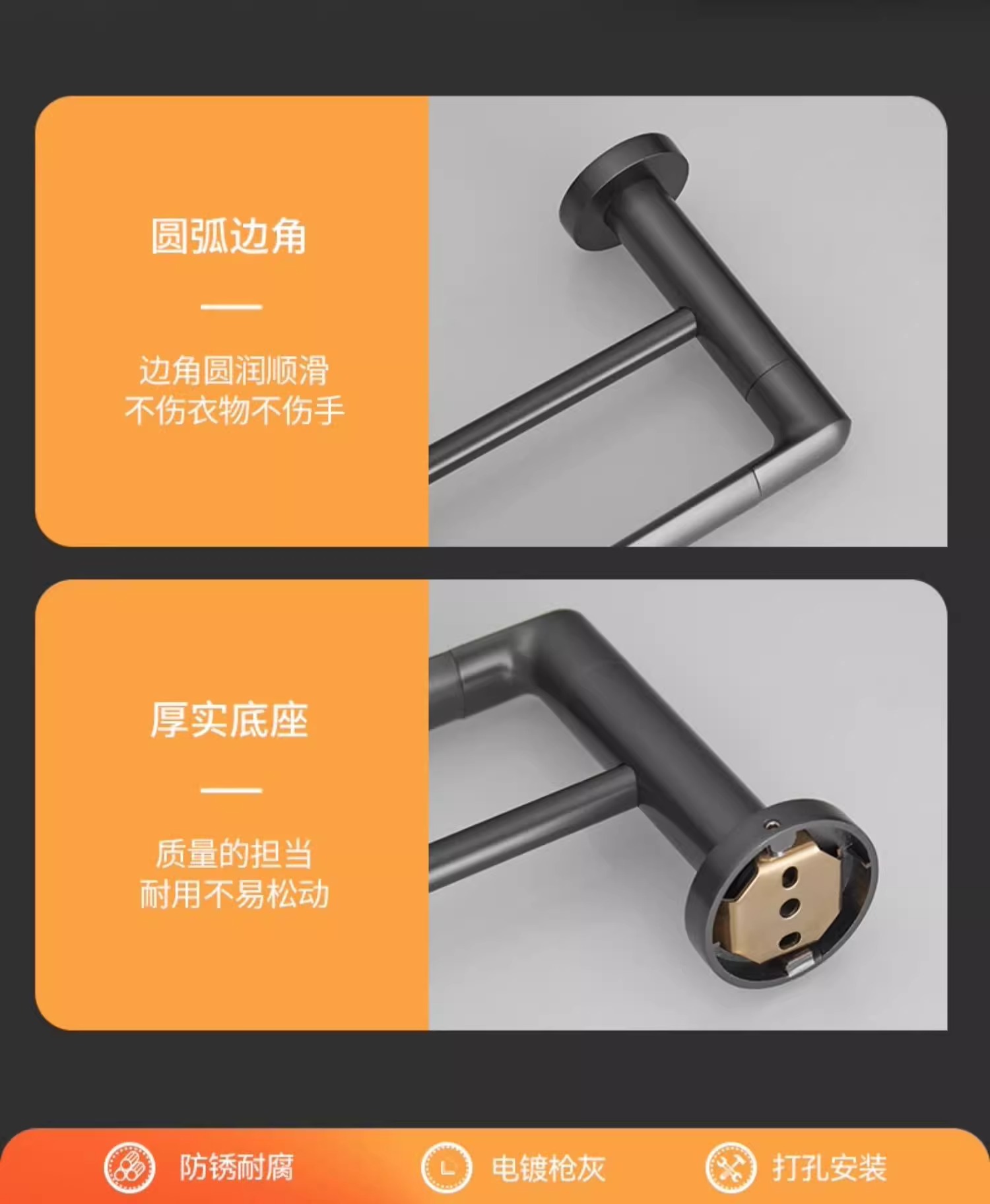 枪灰304不锈钢墙壁壁挂打孔浴巾架多功能毛巾 纸巾置物架收纳套装