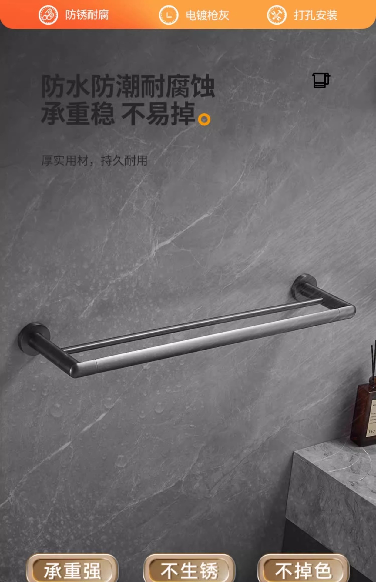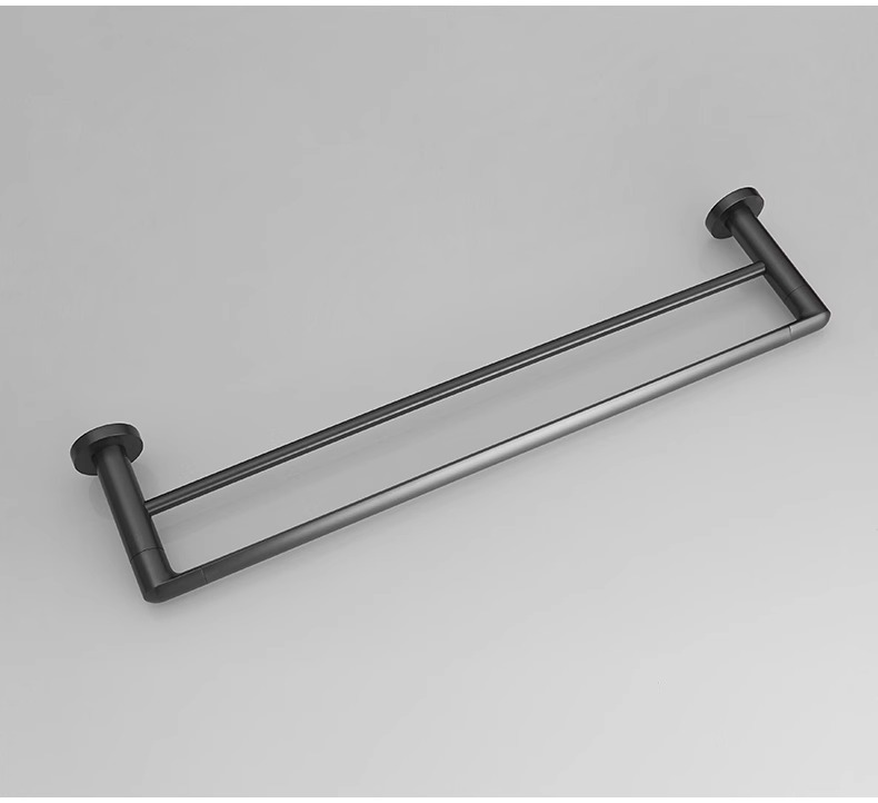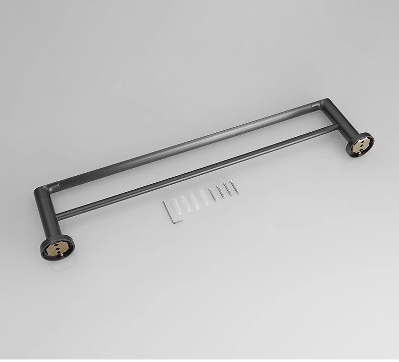 全铜双杆毛巾架免打孔毛巾杆卫生间浴室挂杆浴巾架水镀枪灰置物架