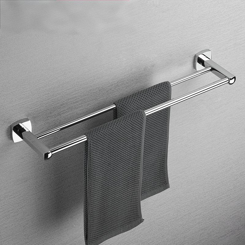 バスルームタオルラック 304ステンレス製タオルバー 浴室洗面所用タオル掛け 壁掛け式ダブルロッドデザイン