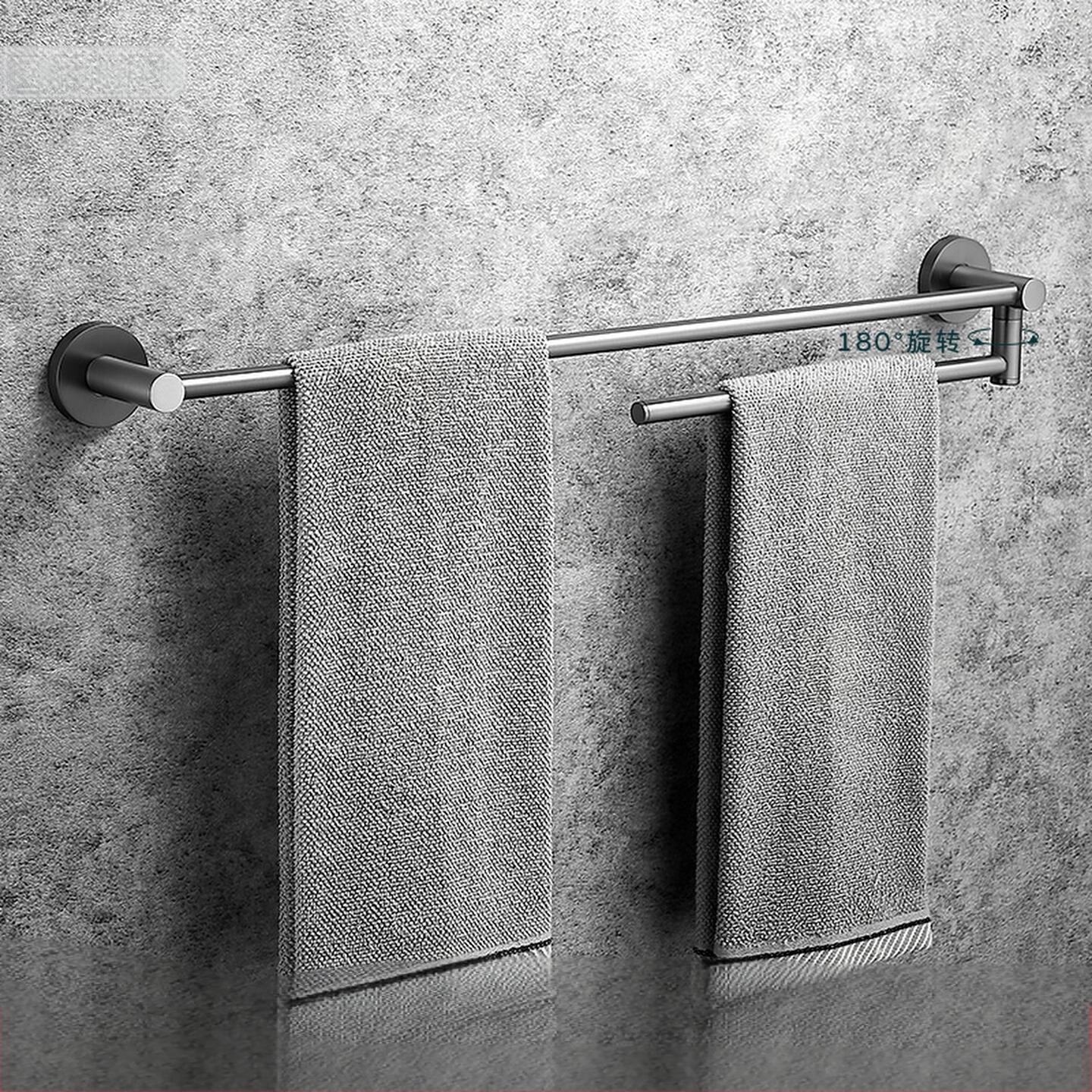 全铜枪灰色拉丝毛巾杆浴室加长折叠单双杆卫生间壁挂活动单杆挂架
