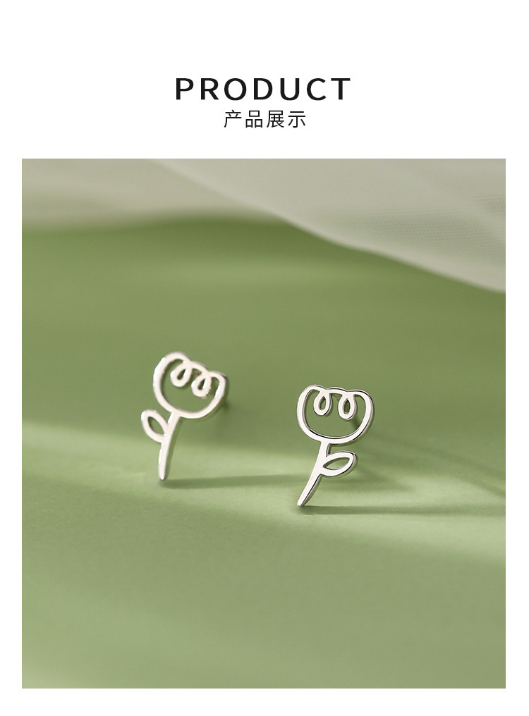 喜飾銀匠925純銀チューリップピアス女性養耳洞小衆デザイン高級感甘美耳飾り代発