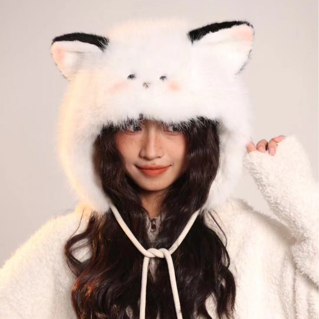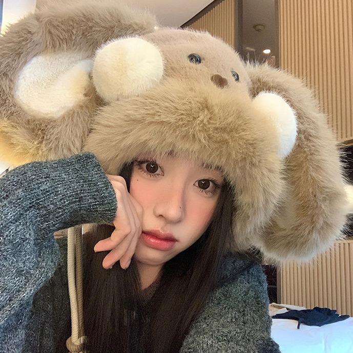 (義烏在庫あり) 甘くて暖かいプルオーバーハット、漫画風アニマル柄、防寒レーフェン帽、多用途、毛皮のような防寒帽子