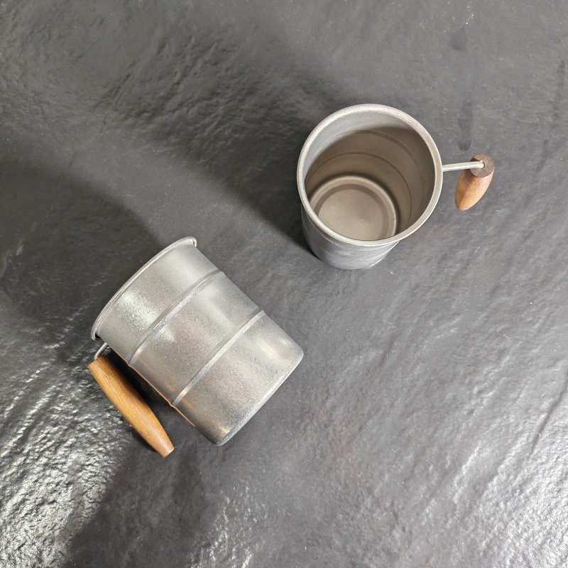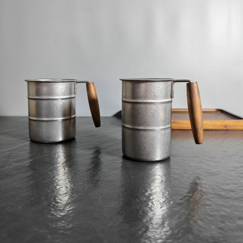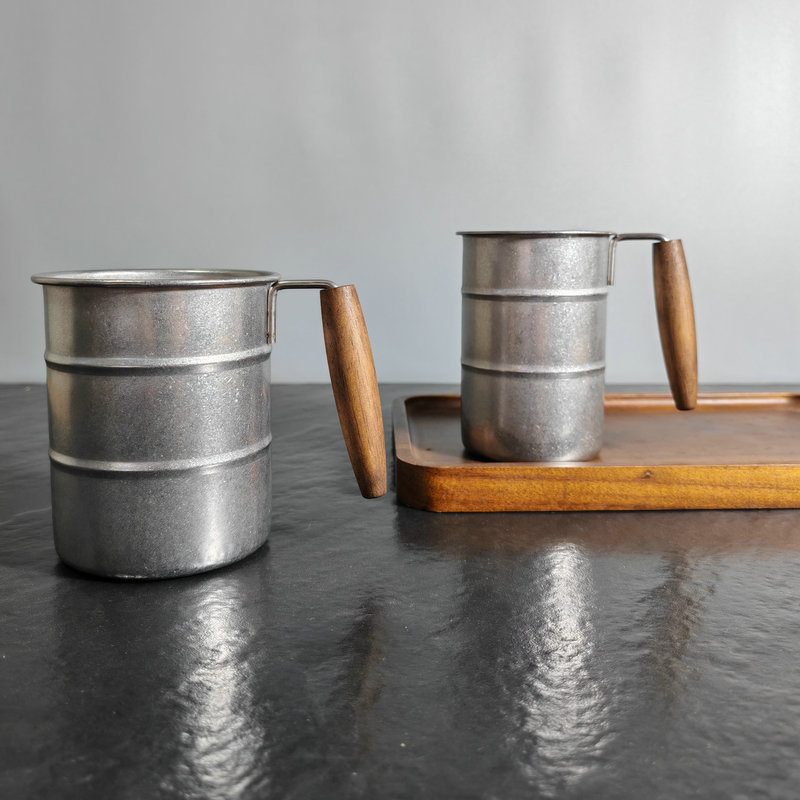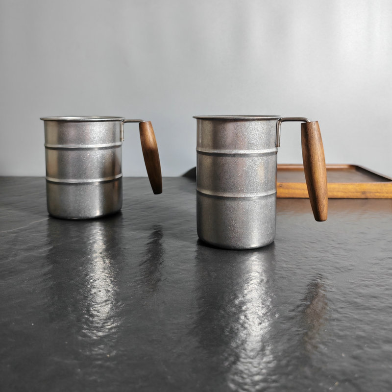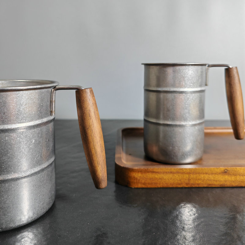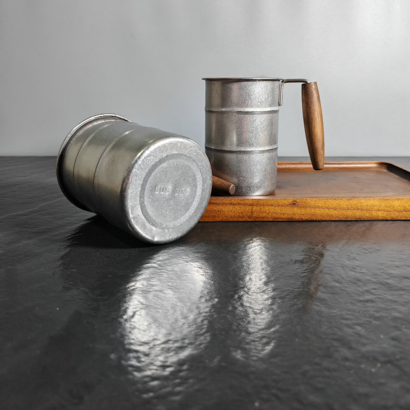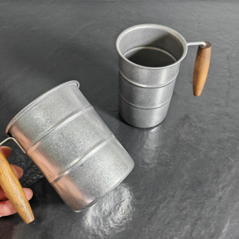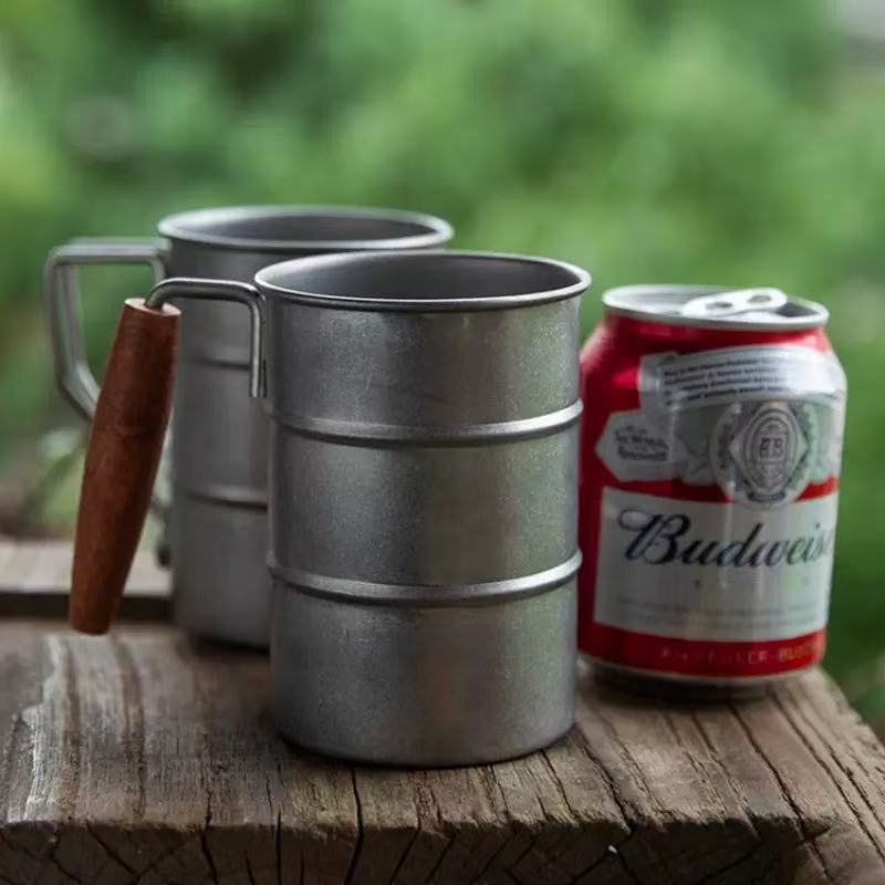 304工业风レトロマグカップクリエイティブスノーフレークグレー木柄ウォーターカップ屋外キャンプカップビールカップコーヒーカップ