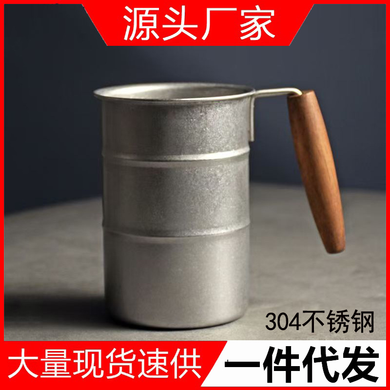 秋と嵐匠レトロ工業風キャンプカップ304ステンレス家庭用屋外カップコーヒーカップお茶