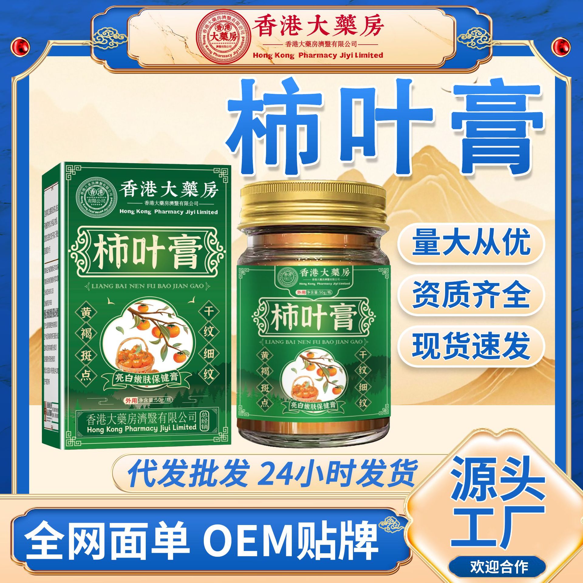 香港大药房柿叶膏融斑排黑膏溶斑提亮雀斑三七猪油膏补水现货直播