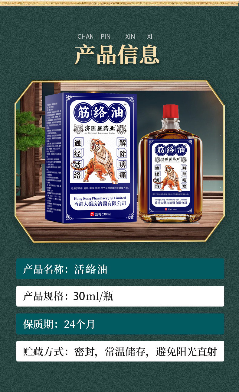 香港大药房济医星正品筋络油舒筋腰椎全身关节疼痛老虎油工厂直发