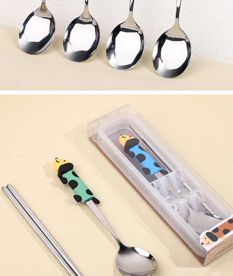 萌え趣味かわいい犬食器304ステンレススプーン箸食器セット携帯食器学生