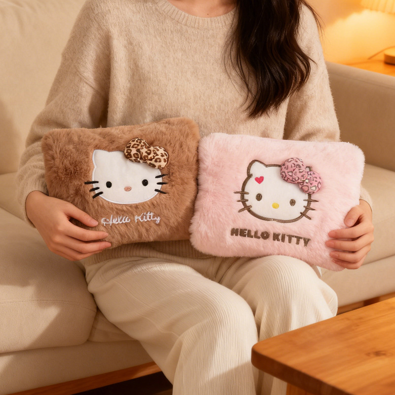 正版授权豹纹kt猫充电热水袋国标防爆可拆洗毛绒暖手宝冬季电暖宝