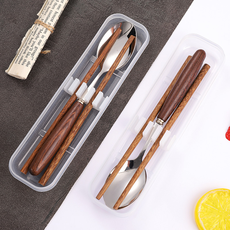 新しい科学者ツーピース食器ステンレス鋼食器箸木製ハンドルスプーン学生女の子ポータブル食器