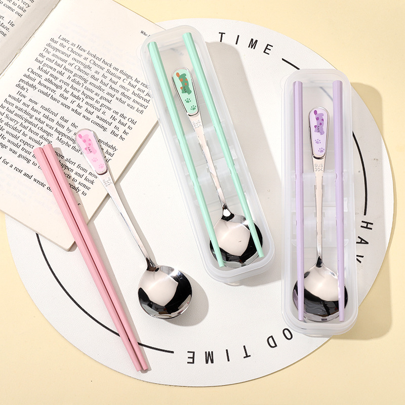 410不钢筷卡通两件套餐具便捷餐具筷勺子套装学生专用餐具两件套