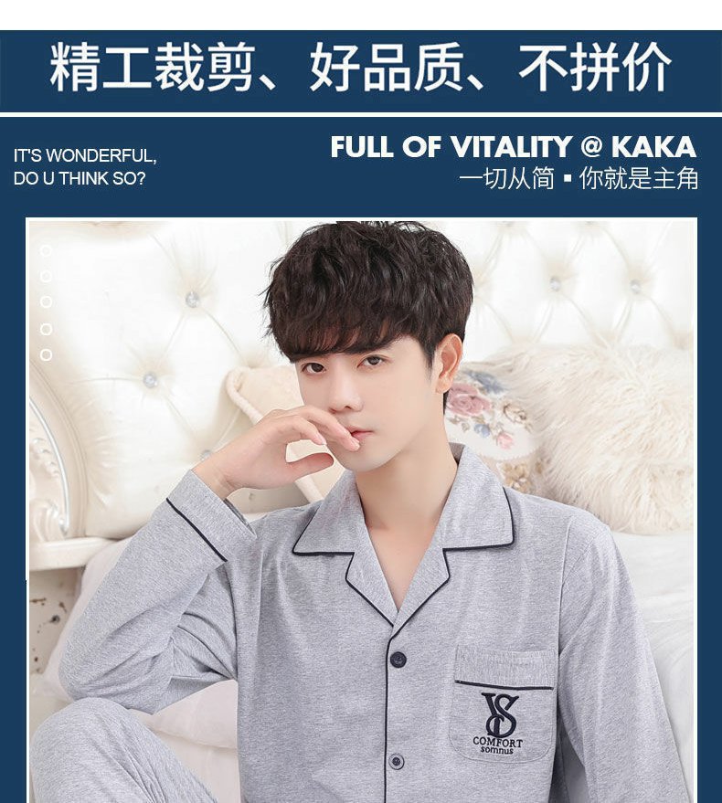 メンズパジャマメンズ春秋新作秋純綿長袖ホーム服メンズ秋冬薄手スーツ