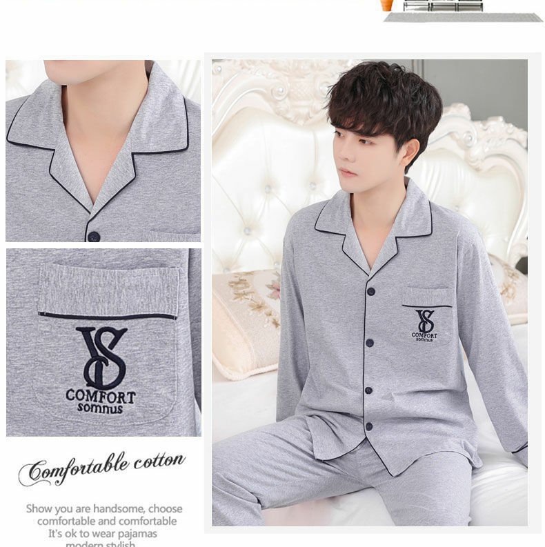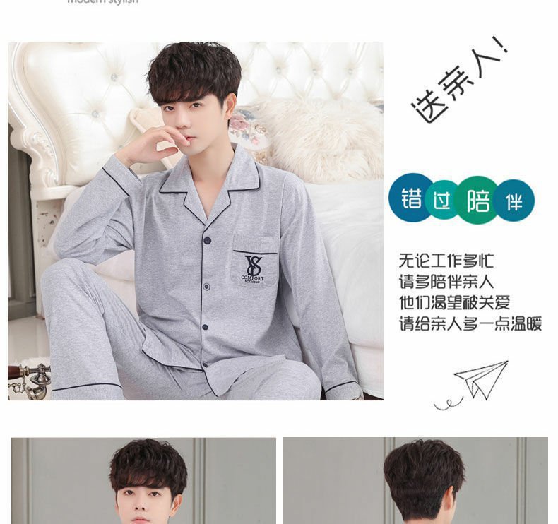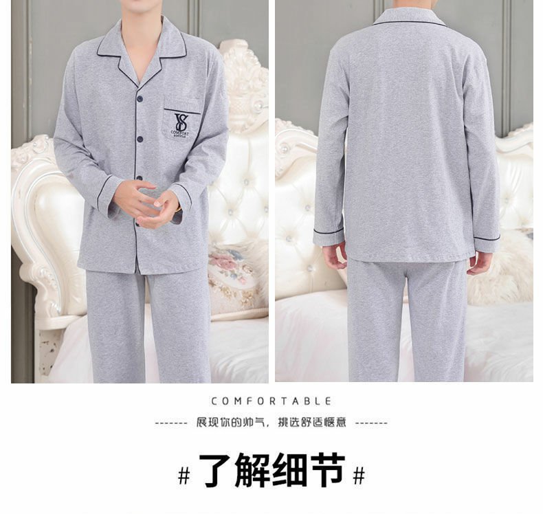 パジャマメンズ長袖ズボン春秋春秋純綿大きいサイズカーディガンホームウェアメンズ新作スーツ