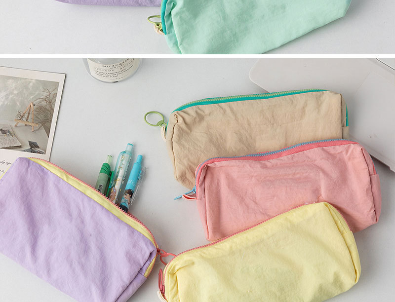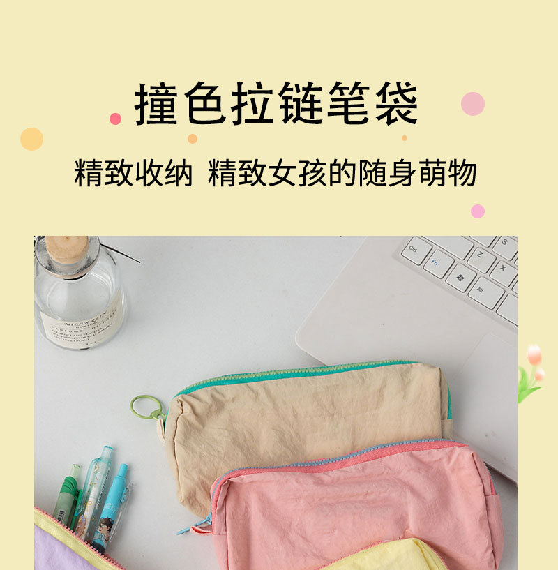 韓国風カラーブロック学生筆袋、かわいい乳白色の文具袋、高価値大容量文具箱、シンプルなスタイルの筆袋