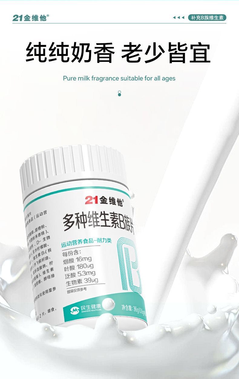 21金维他多种维生素B族压片糖果60粒/瓶8种B族儿童成人正品可代发