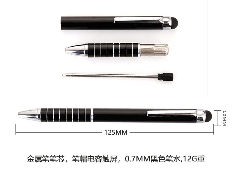 2. 笔帽电容触屏(可用手机、iPad等)0.7金属旋转笔—黑色金属笔芯(可选择)