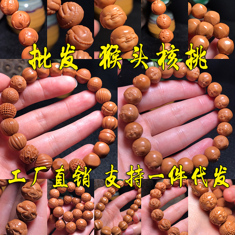 工場直供猿頭胡桃手串オリーブ核男性文遊び易包糊素串手彫刻オリーブ手串