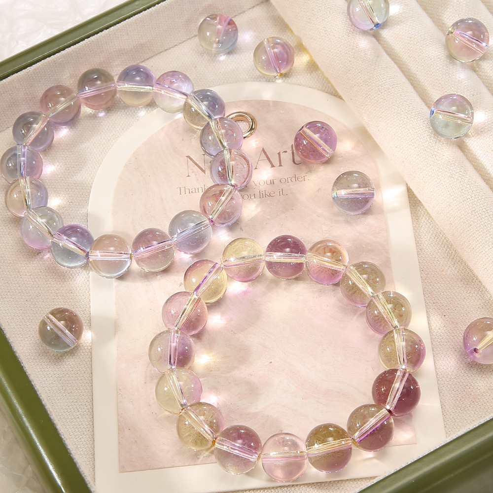 10mm【微砕光珠混合】氷透微裂爆花珠数珠手作りブレスレット散珠アクセサリー部品