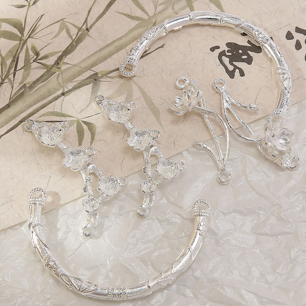 【亮銀半腕輪】新中国式古風合金金属半腕輪diy手作りビーズブレスレット部品材料