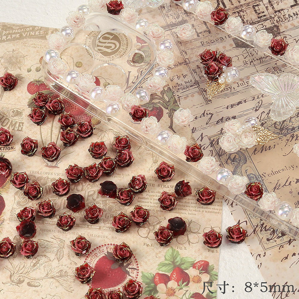 染めの柔らかいゴムの花の彫刻の花の穴がない細い閃光はバラの花の樹脂のネイルアートのdiyの手編みの携帯電話のケースに変わります。