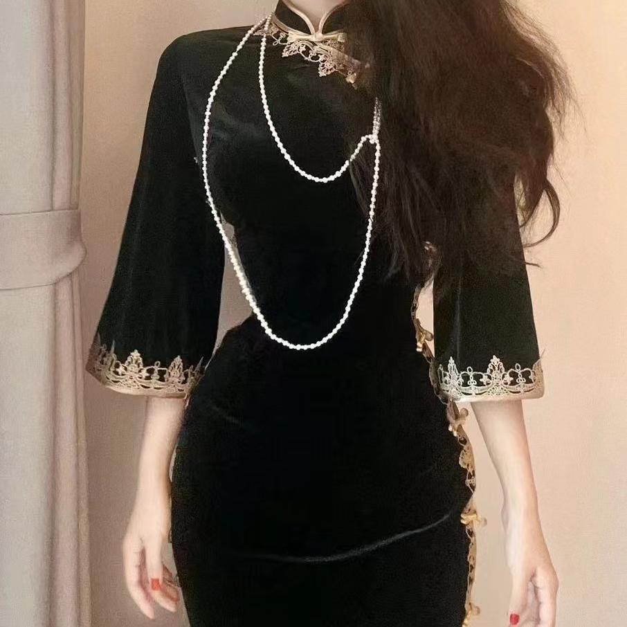 秋冬チャイナドレスは若いタイプの少女の新中国式2024の新しい絶美とベルベットのワンピースを改良して日常的に着ることができる