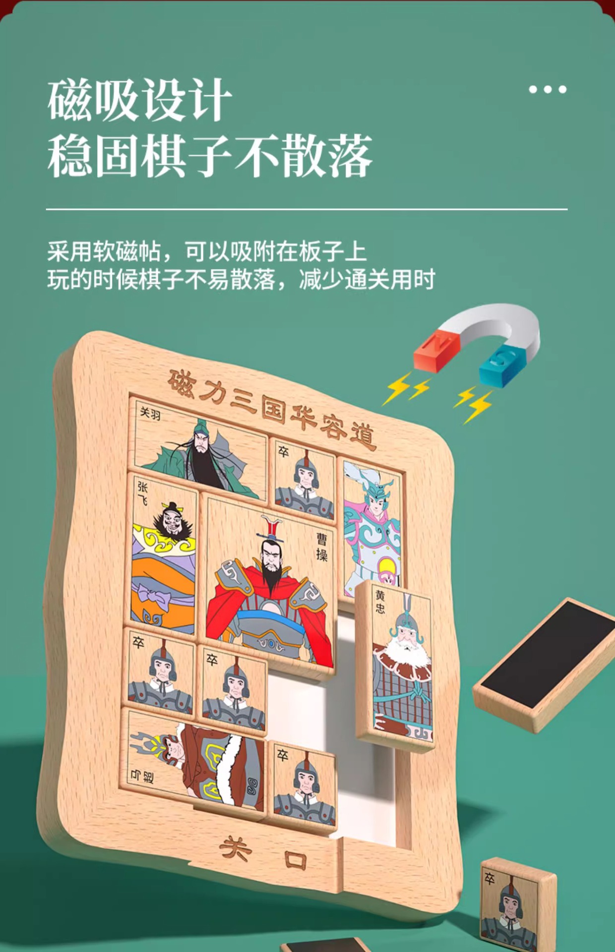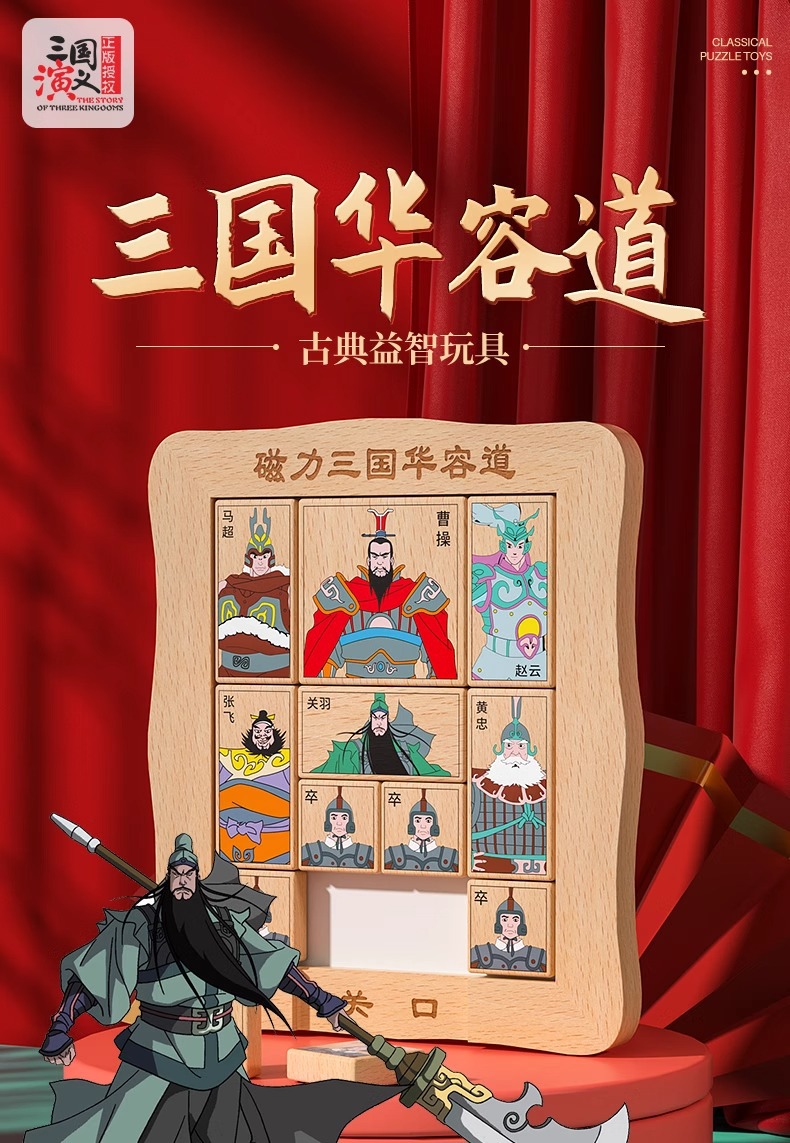 磁気三国デジタル華容道知能解錠ジグソーパズル古典児童通関積木製露店玩具