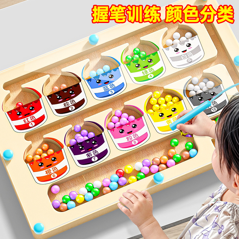 子供木製磁気運筆演算早教迷宮デジタル色認知分類板走珠益知力玩具